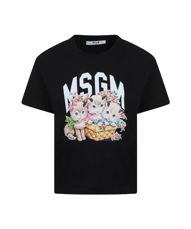 MSGM Kids T-Shirt Nera con Logo per Bambine