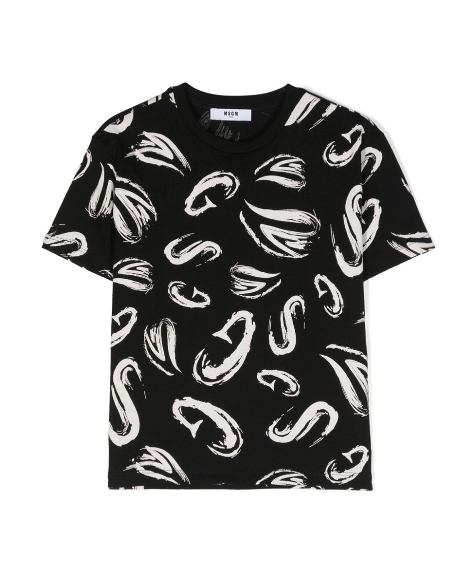MSGM Kids T-shirt Nera con Stampa Graffiti per Bambini fronte