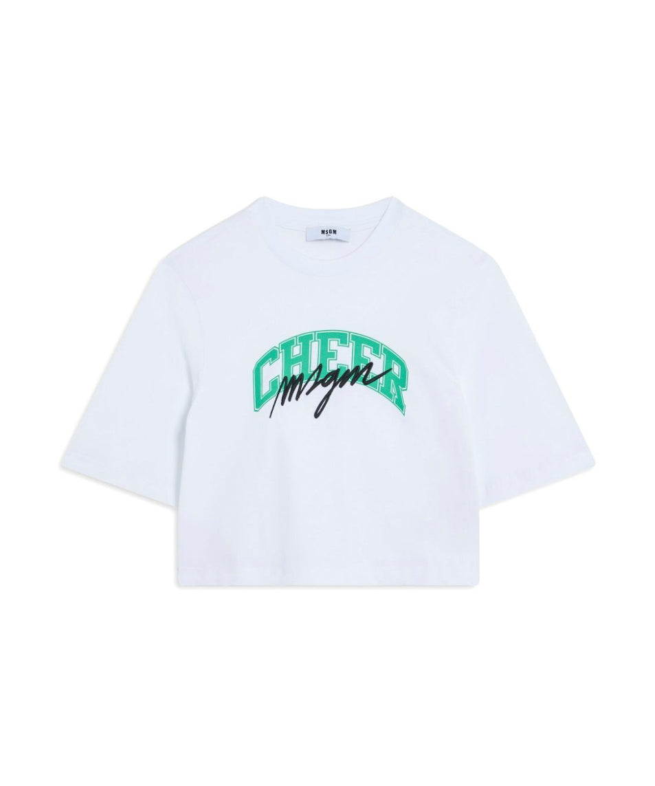 MSGM Kids T-Shirt Crop Crema con Stampa Logo per Bambine