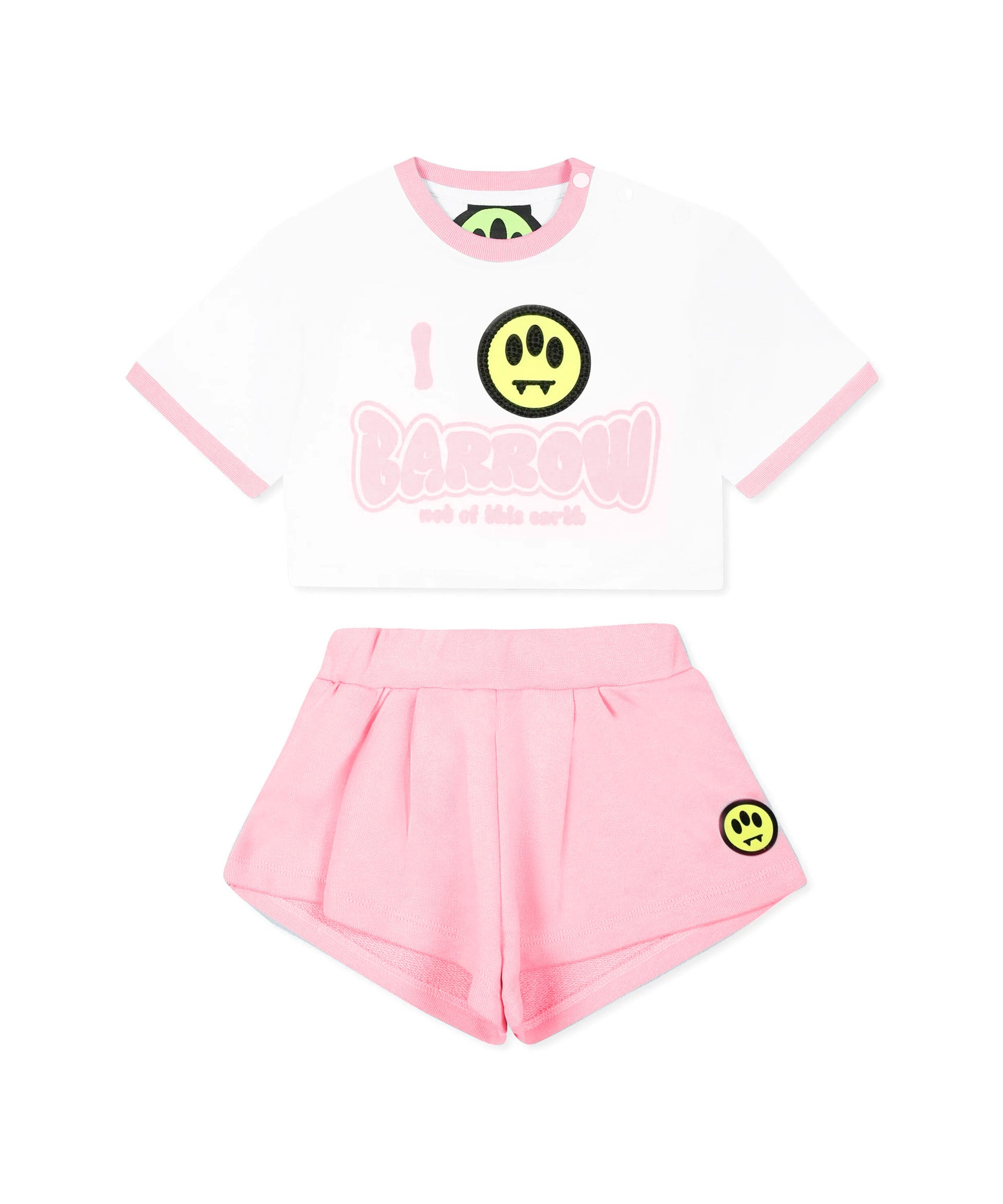 Barrow Kids T-shirt Bianca con Stampa con Shorts Multicolor per Neonati