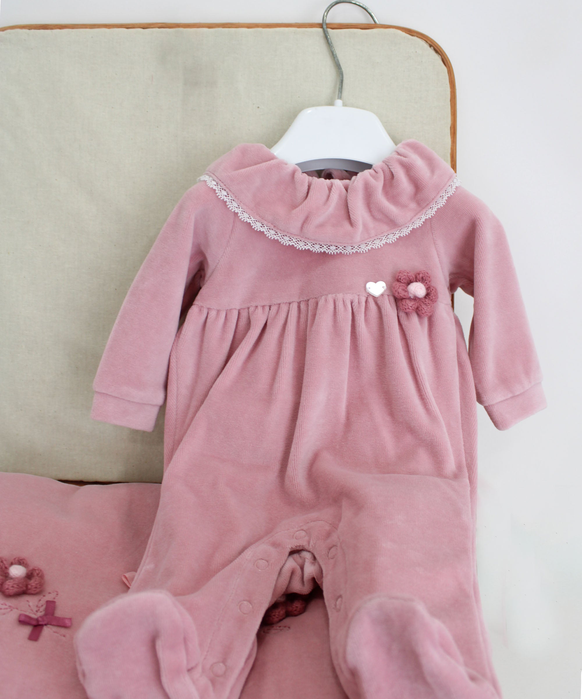 Minibanda Tutina Fucsia con Ricamo e Fiori per Neonate