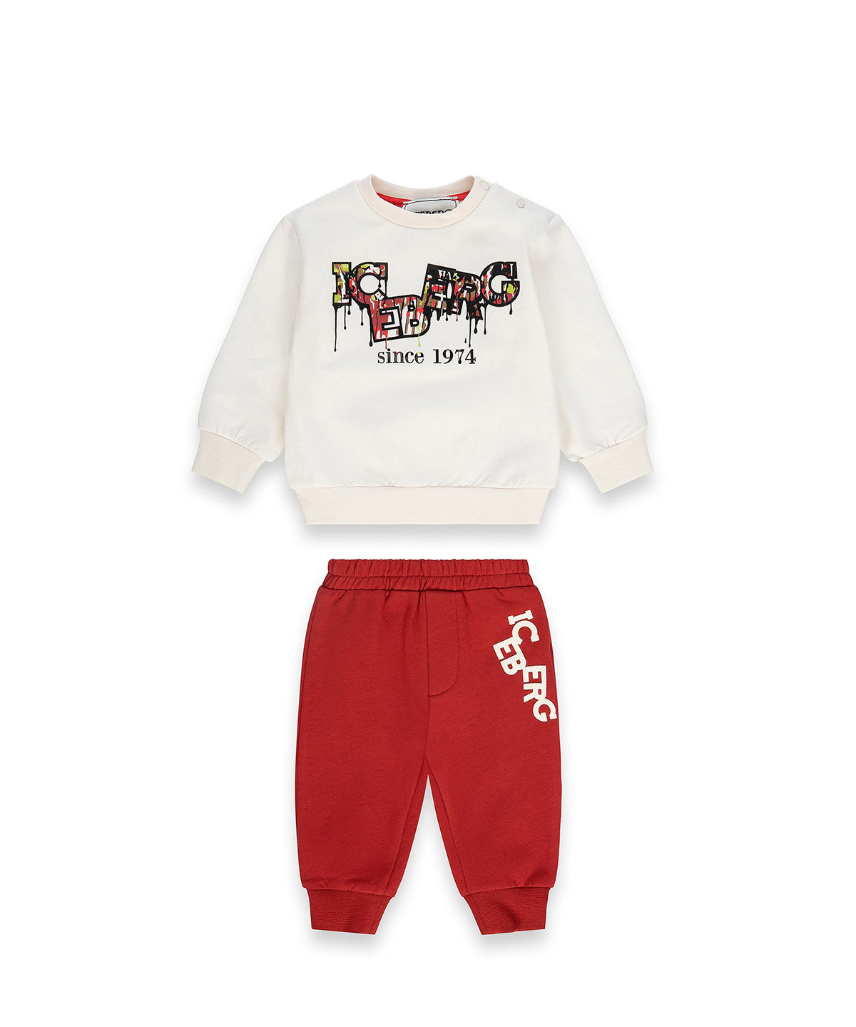Iceberg Kids Completo Felpa con Pantaloni Rosso per Neonati