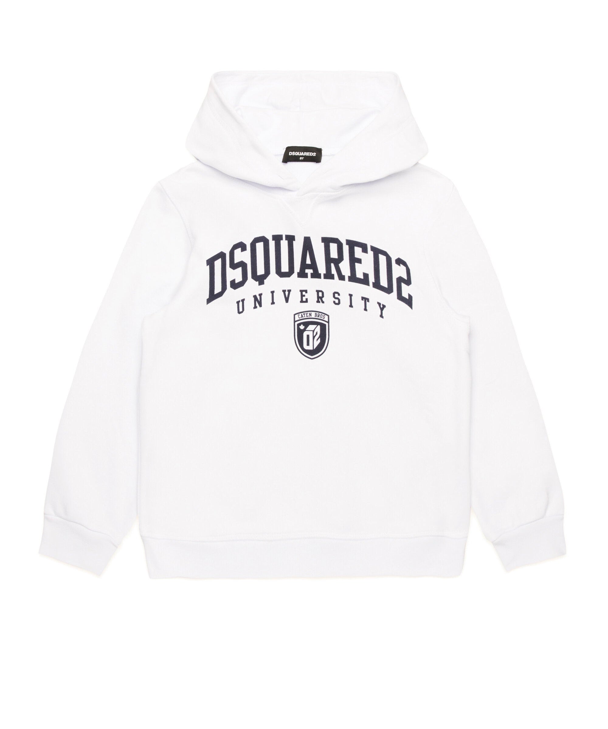 Dsquared2 Kids Felpa Bianca con Cappuccio Stampa ICON per Bambini