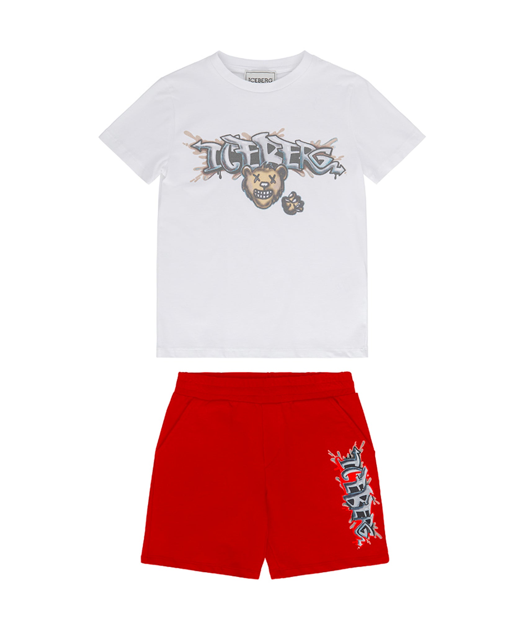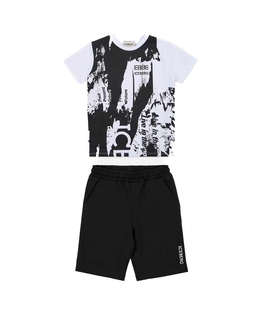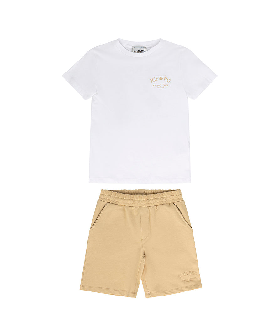 Iceberg Kids T-shirt Bianca con Short Giallo per Neonati