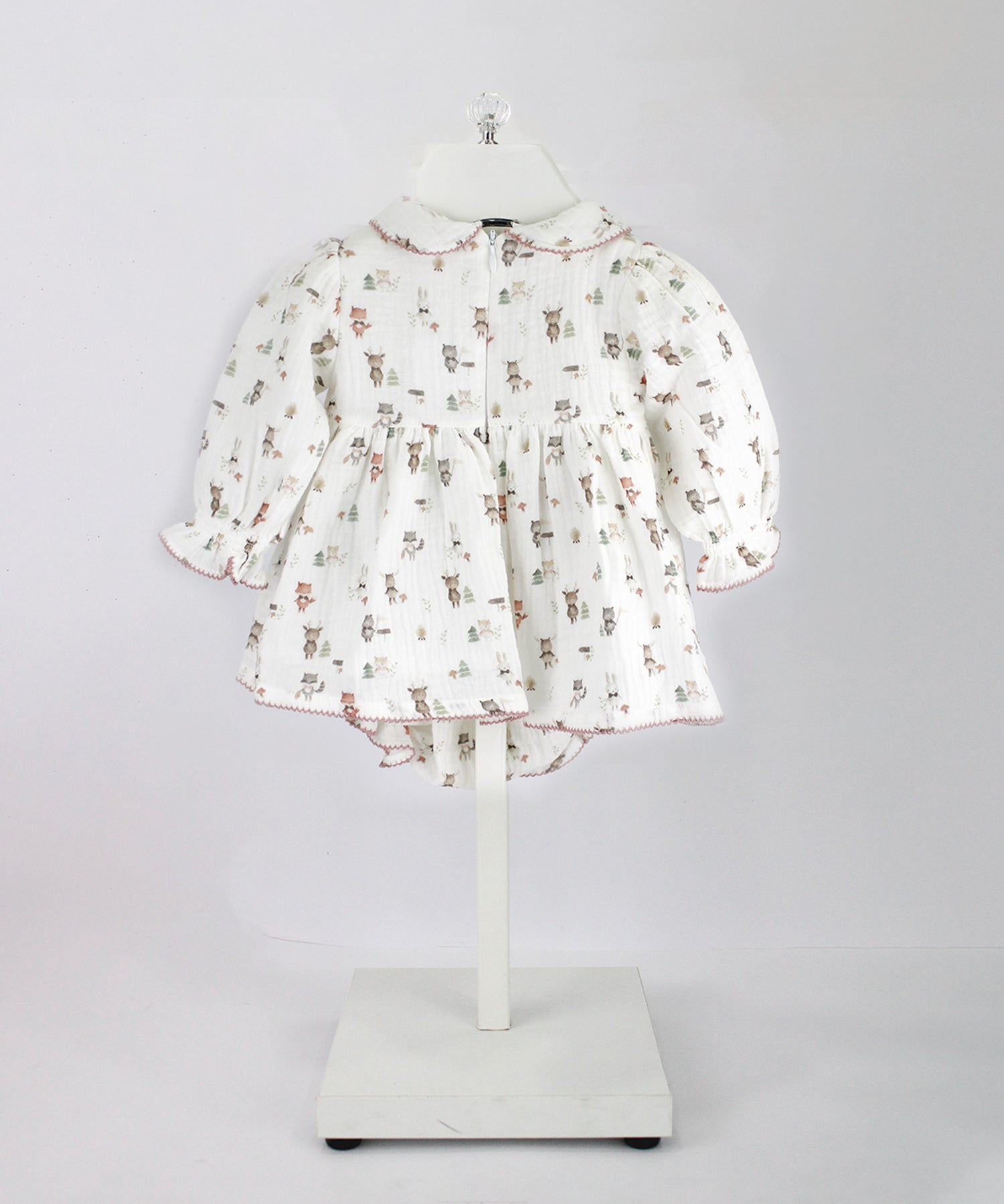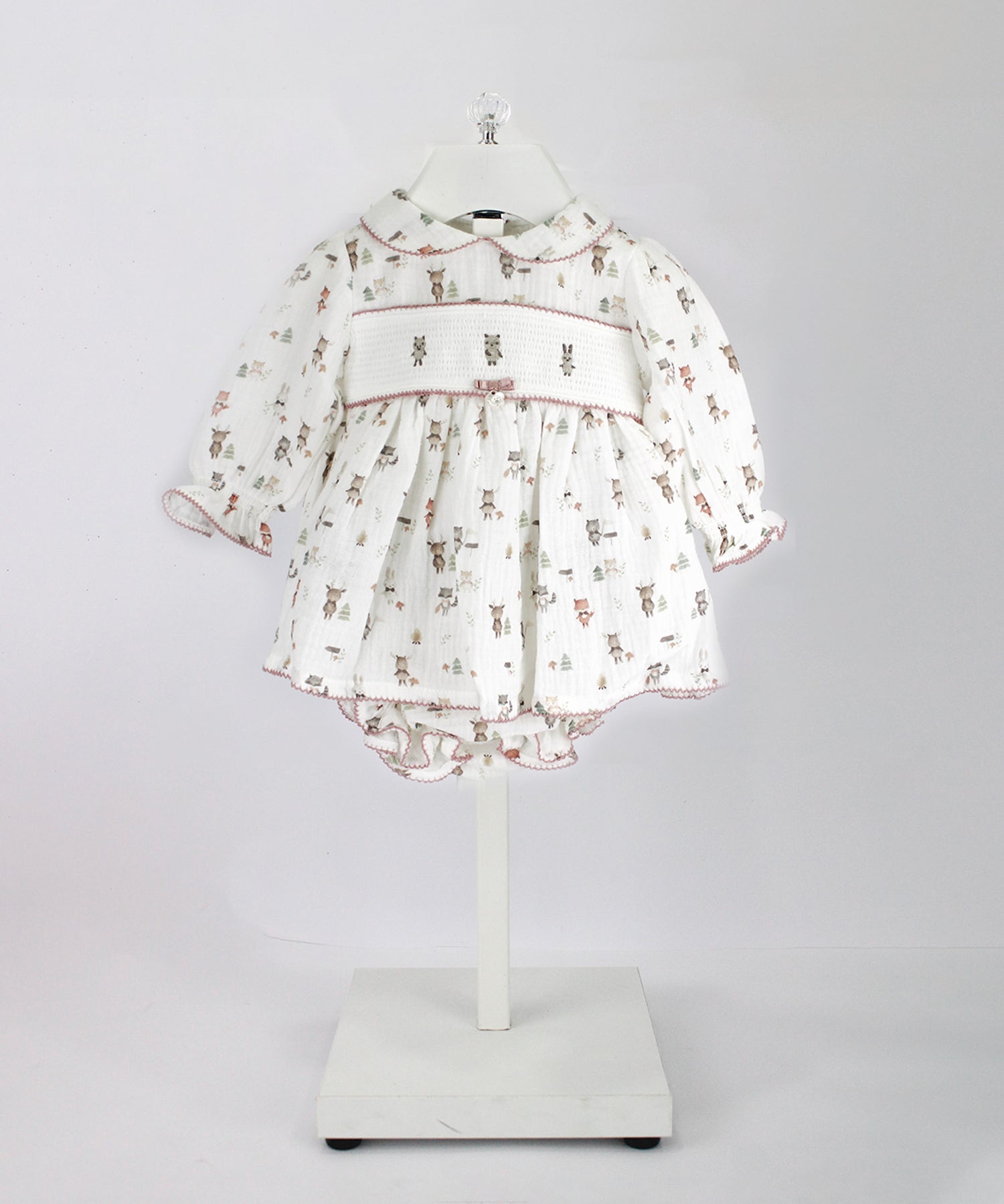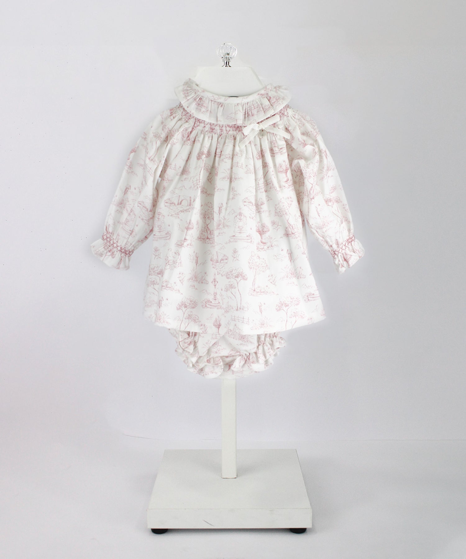 Deolinda Abito con Culotta Fantasia con Fiocchi Rosa per Neonate