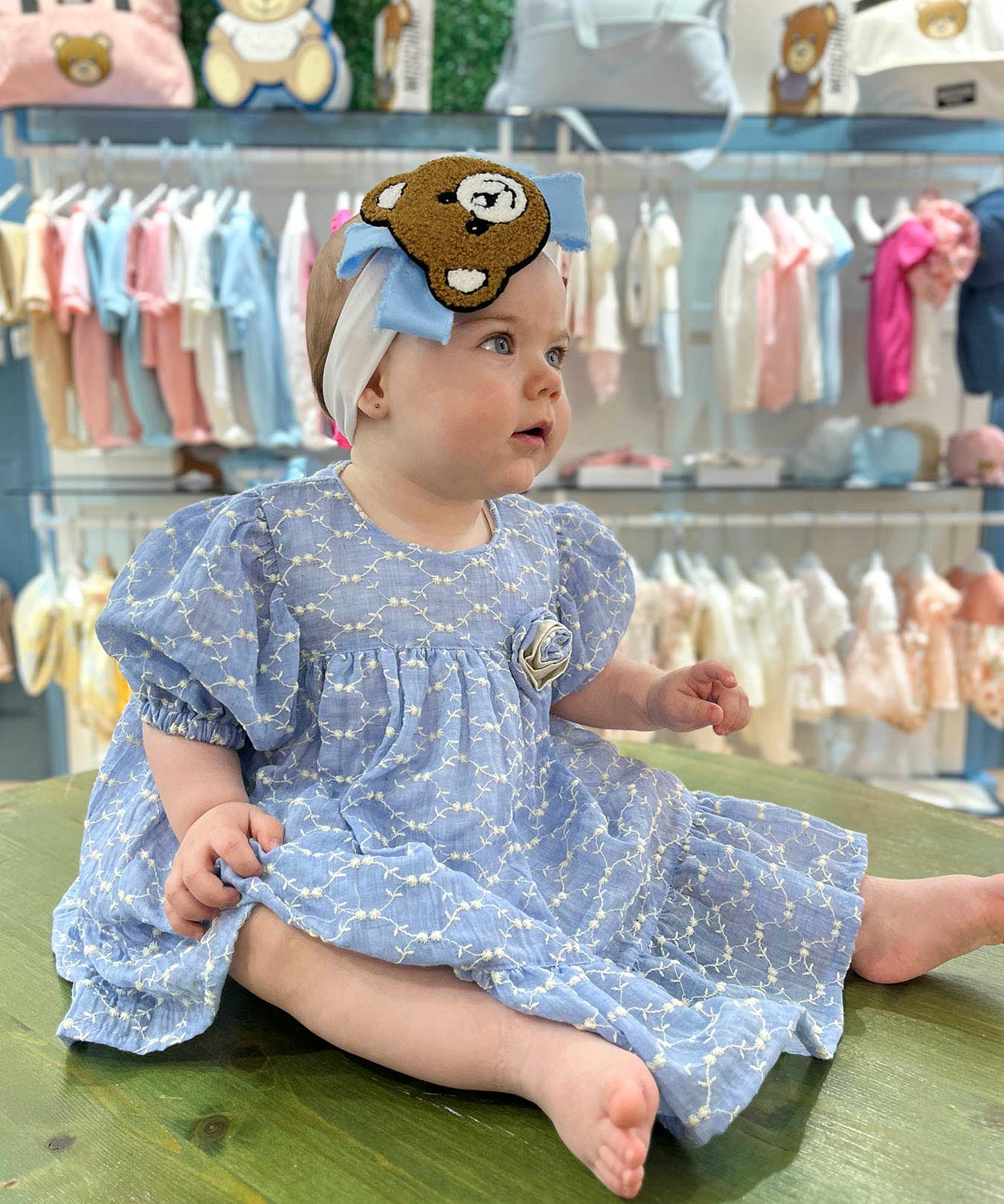 Deolinda Abito Celeste con Applicazione Fiore per Neonate