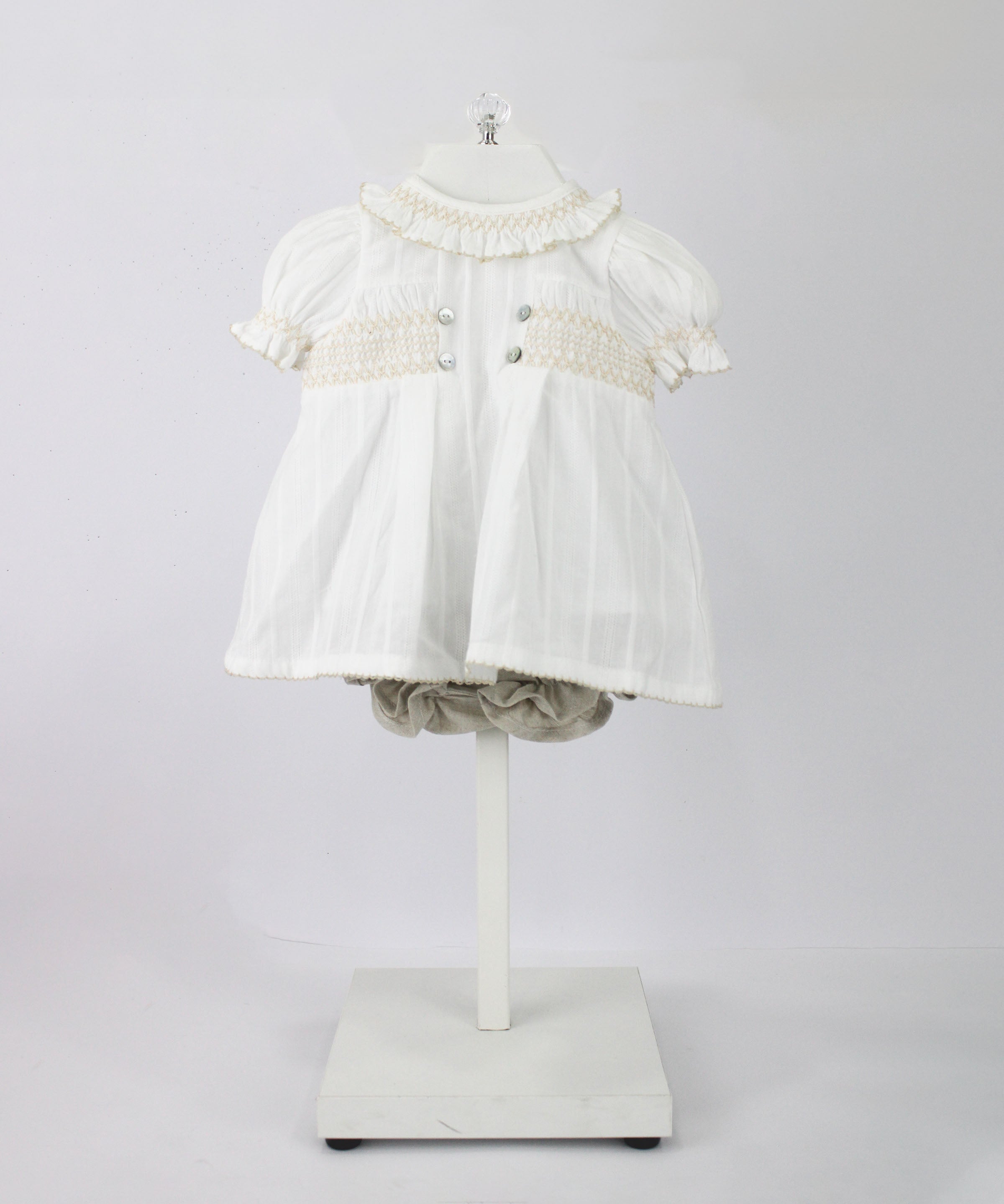 Deolinda Abito Bianco/Beige con Fiocco per Neonate