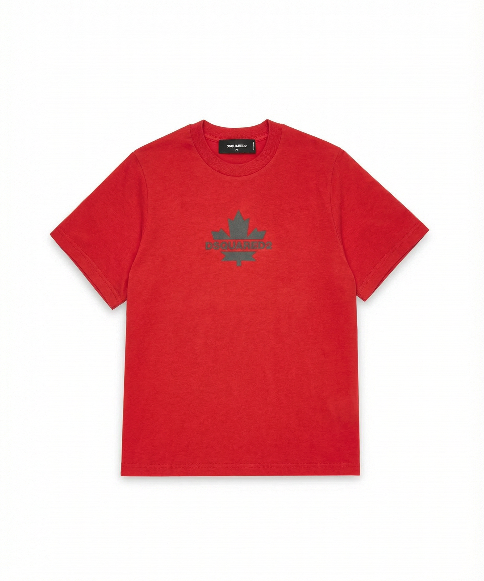 Dquared2 Kids T-shirt Rossa  con Stampa Logo Foglia a Contrasto Nera per Bambini