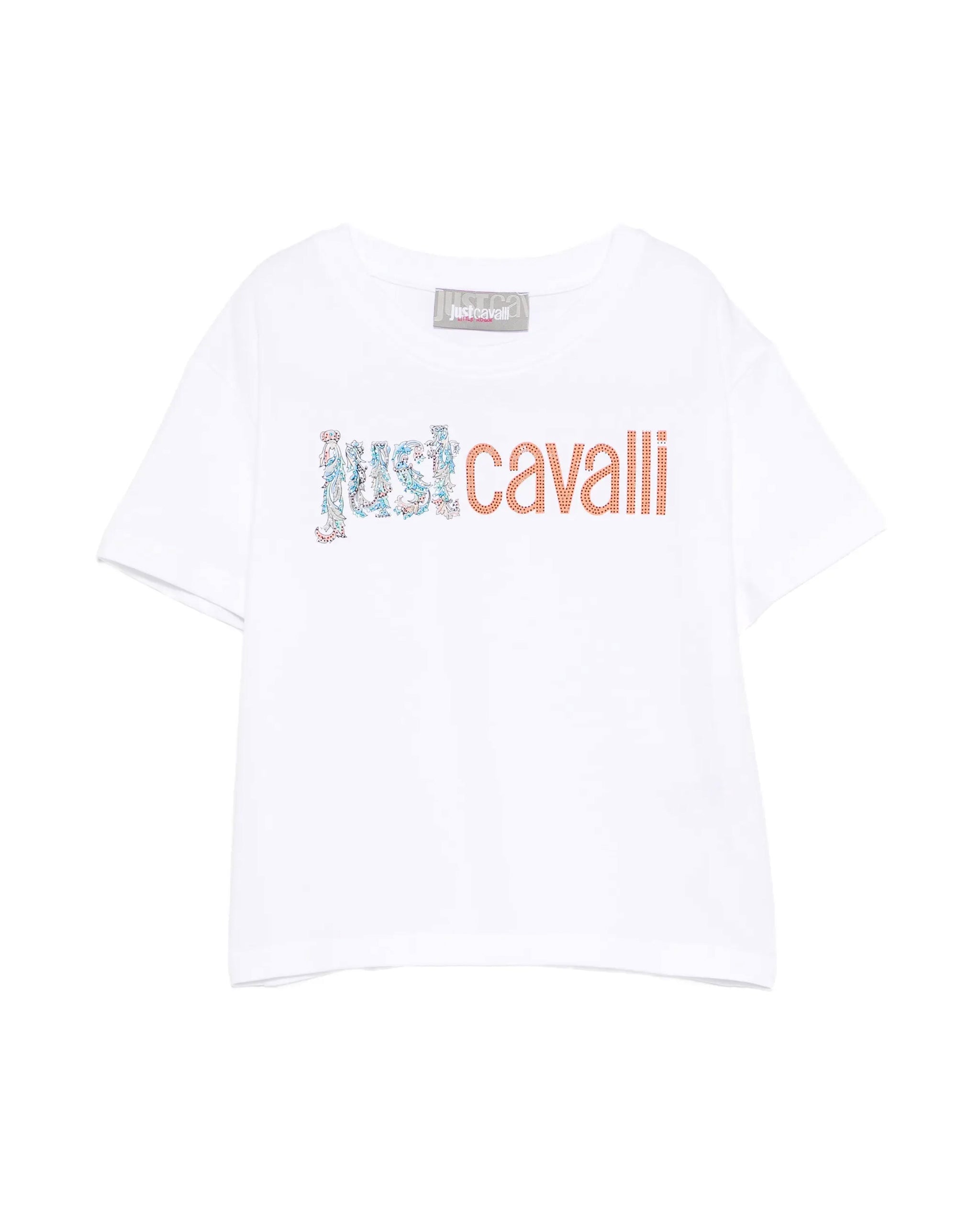 Just Cavalli Kids T-Shirt Bianco con Stampa Logo per Bambine