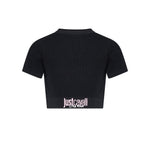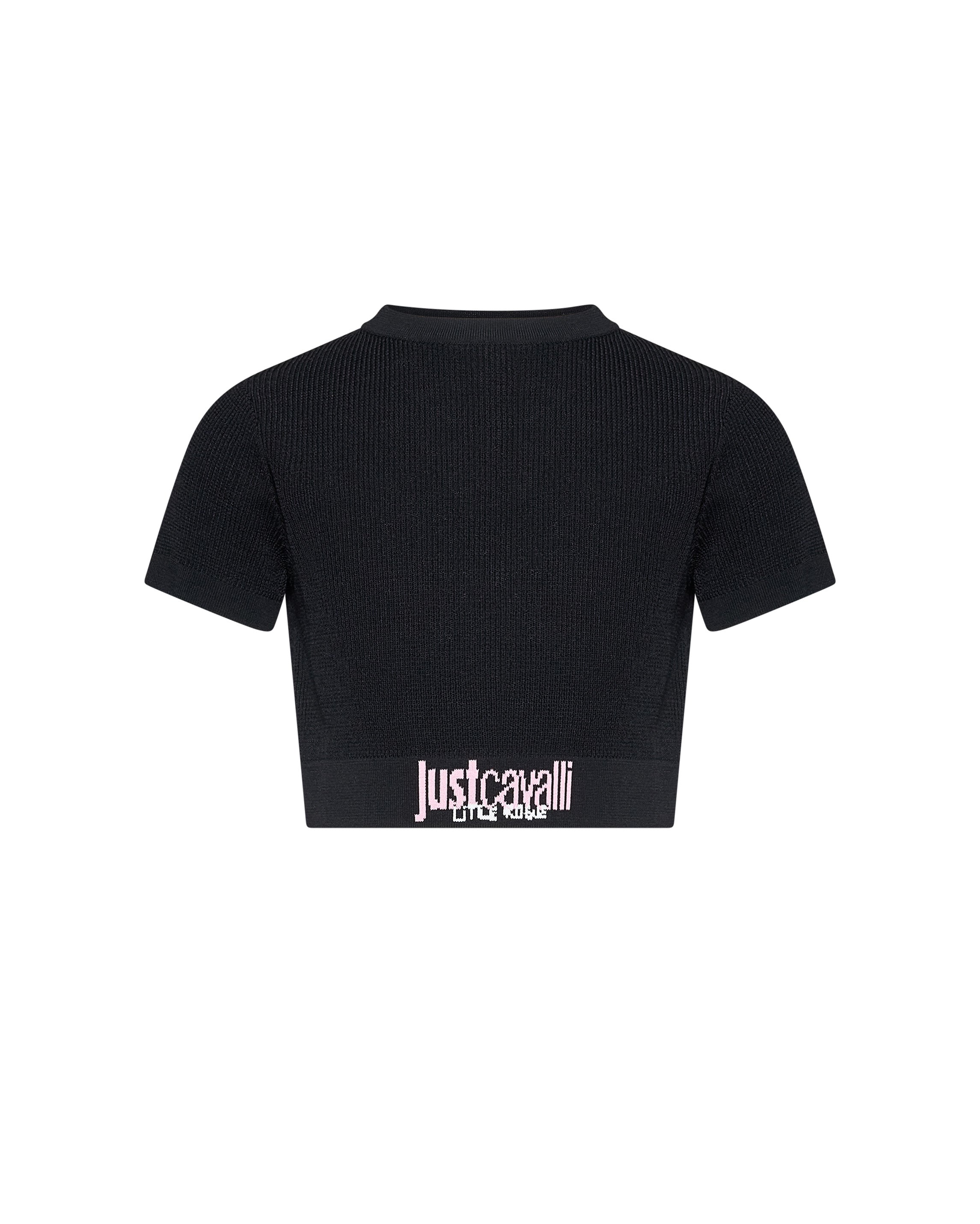 Just Cavalli Kids T-Shirt Crop Nero a Coste per Bambine