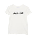 Roberto Cavalli Kids T-Shirt Bianco con Logo Ricamato per Bambine