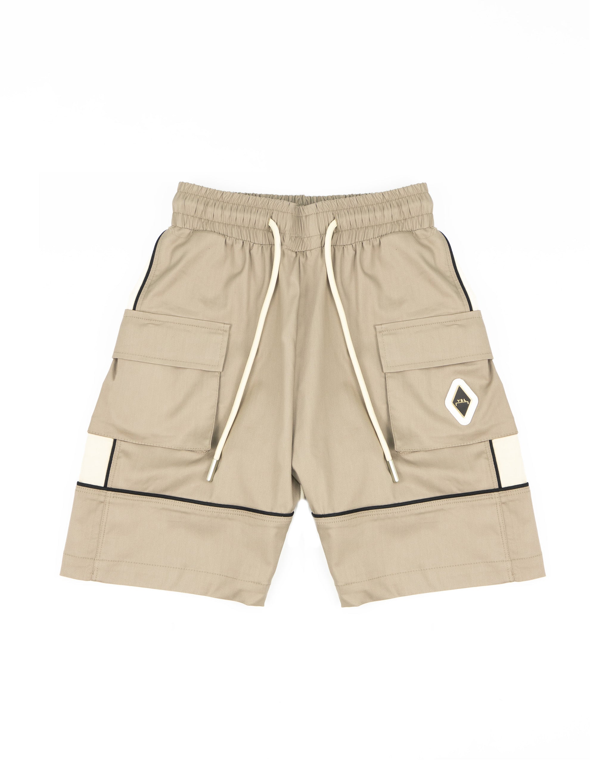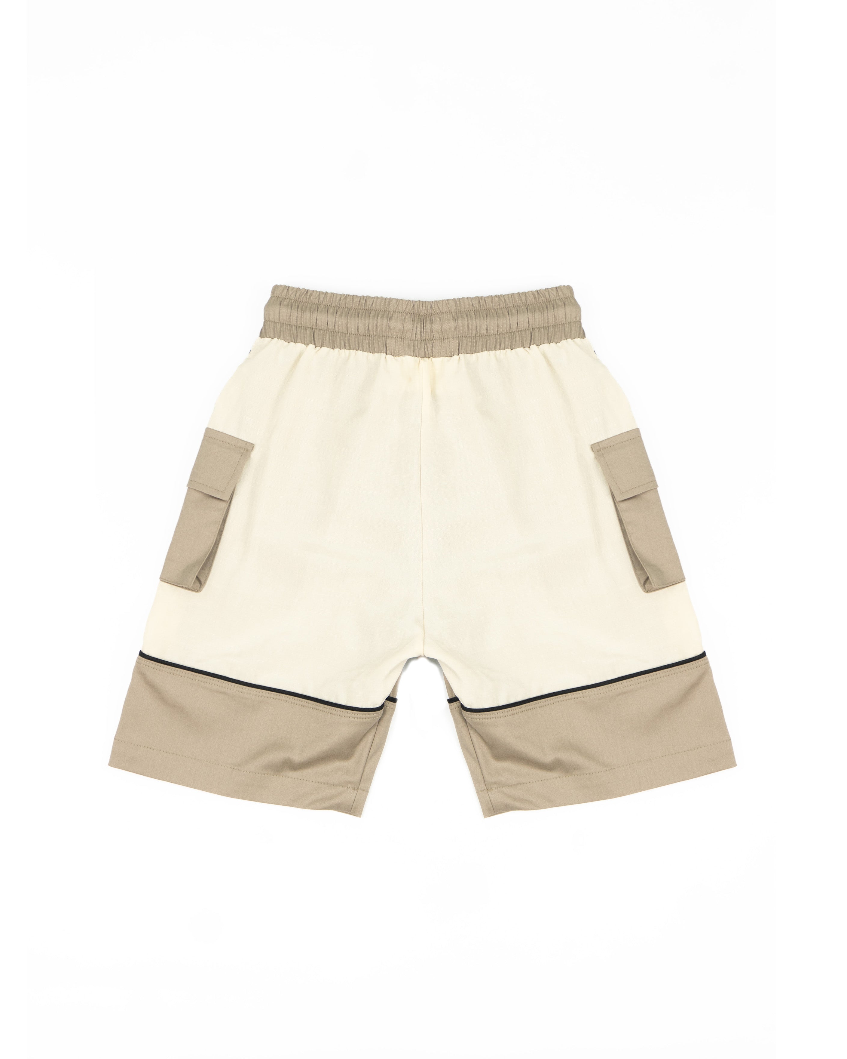 Yes London Kids Bermuda Cargo Fango e Beige a Contrasto con Laccio e Applicazione Logo per Bambini