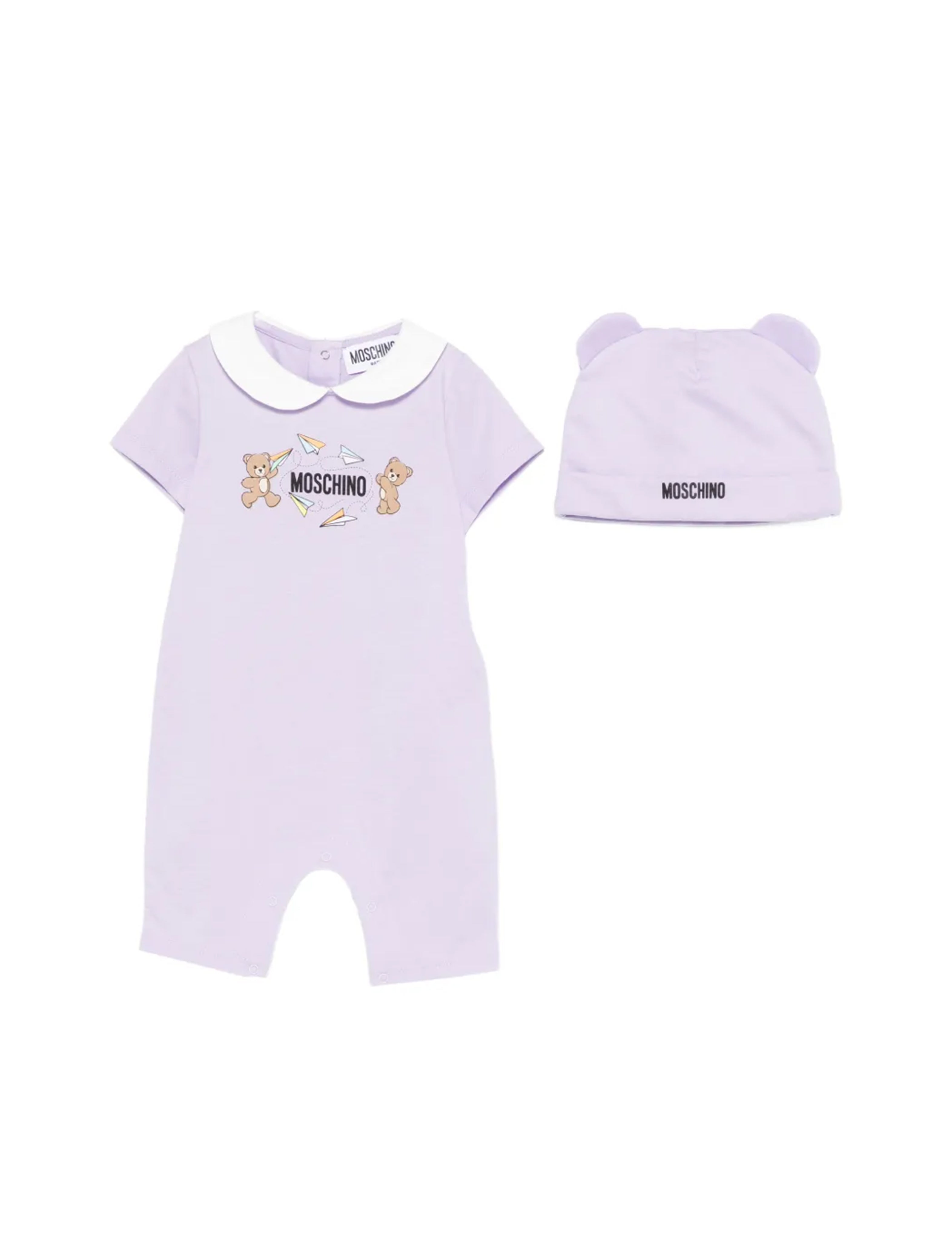 Moschino Kids Pagliaccetto+Cappello Lilla con Logo Teddy Bear per Neon - Florence Kids