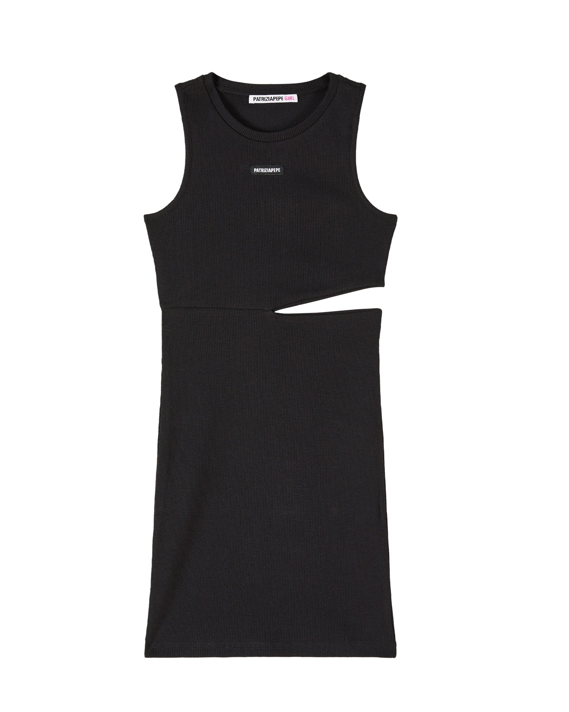 Patrizia Pepe Kids Abito Nero Aderente a Coste per Bambine