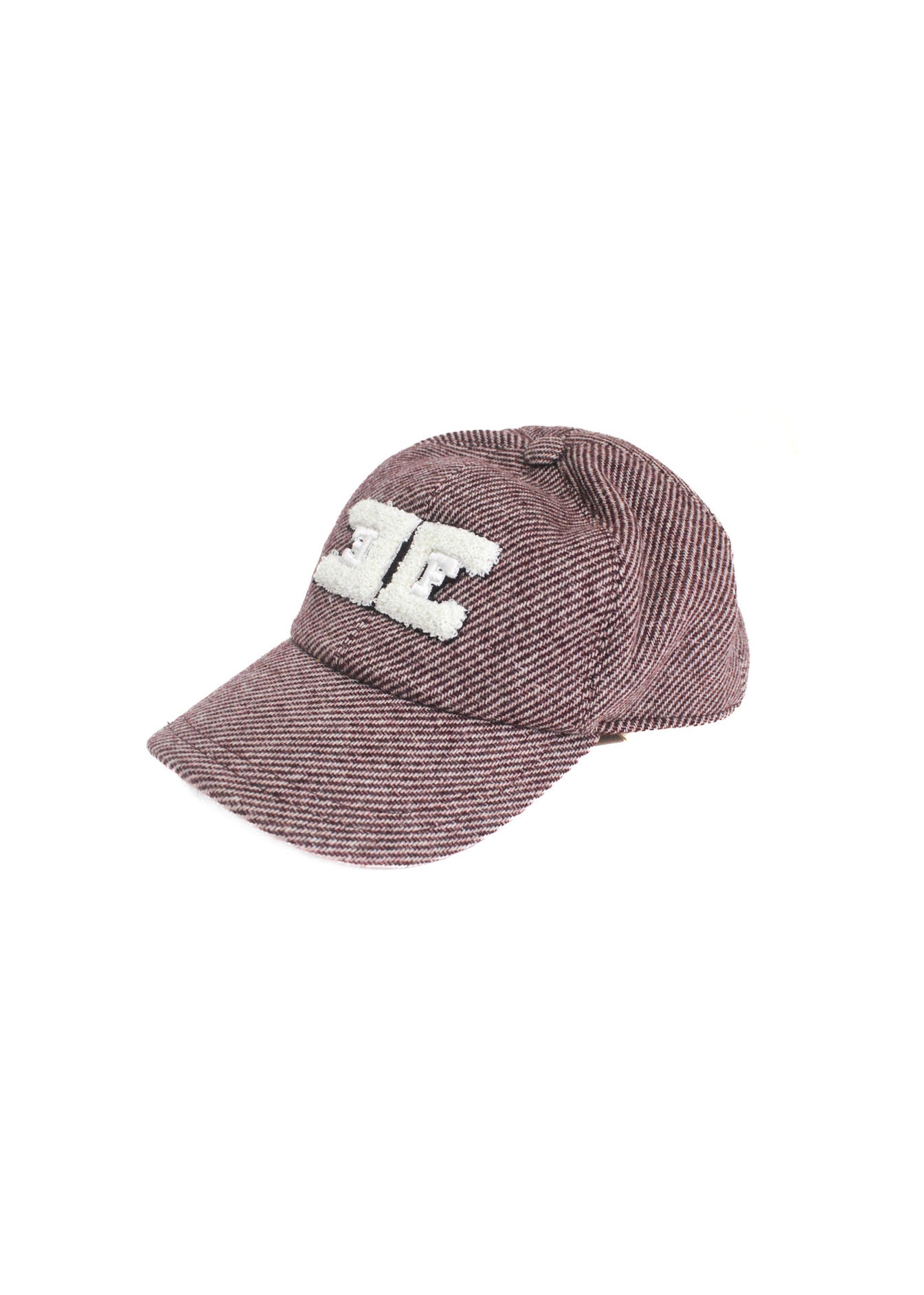 Discover Elisabetta Franchi's plum wool blend hat, a stylish and functional accessory for little girls. With a six-panel construction and a diagonal stripe pattern, this hat features a chenille logo patch on the front and a fabric-covered button on the crown. The hook-and-loop closure on the back allows for an adjustable fit, while the full lining offers comfort and warmth. Perfect for completing any outfit, whether casual or chic.