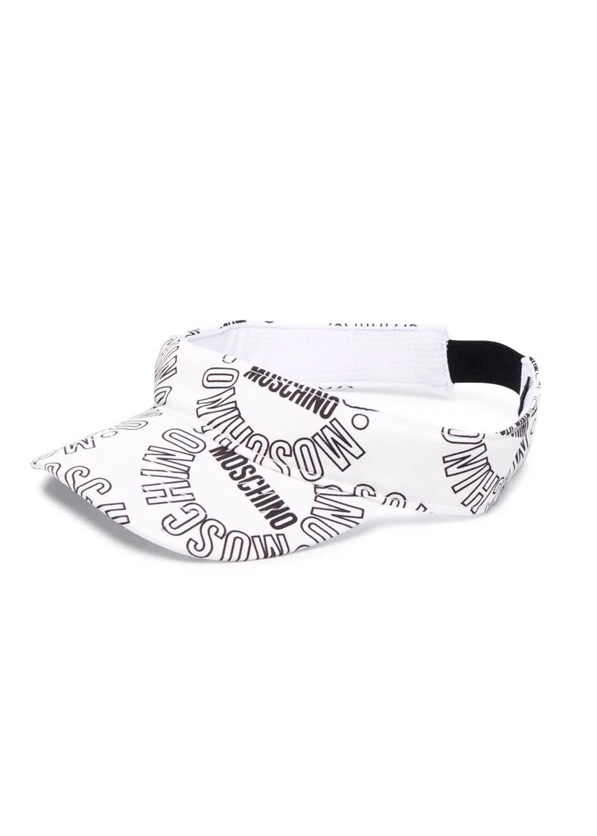 Visor with print All-over logo print, curved brim, open crown and elasticated waistband. Material: Cotton. Composition 100% Cotton Washing instructions Machine wash