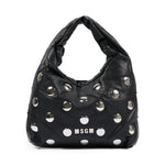 Msgm Kids Borsa a Spalla Nera con Applicazioni Metalliche e Logo per Bambine