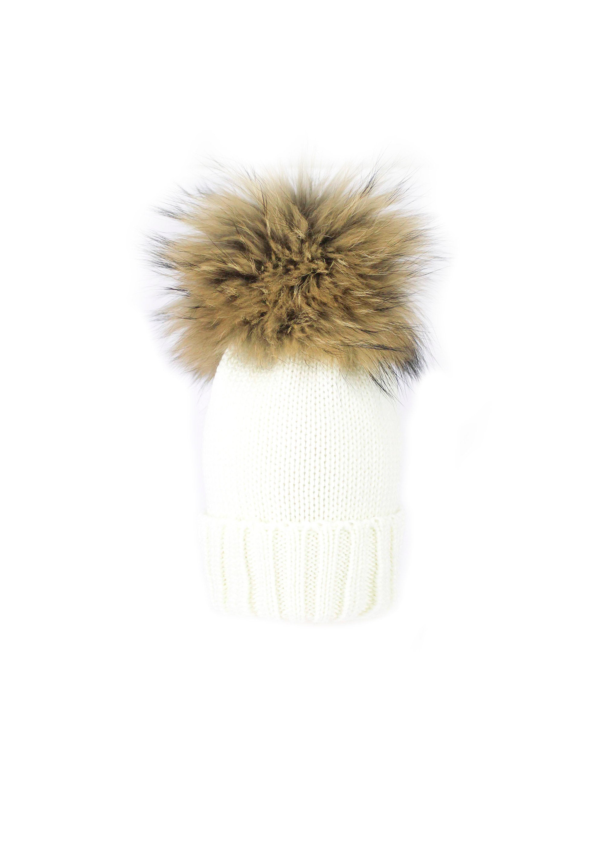 Regina's white wool hat with pom pom is the perfect accessory to keep your little one's head warm in style. Crafted from soft wool with a thick ribbed knit, it offers a comfortable and stretchy fit, fitting perfectly on the head. The cuff and faux fur pom pom add a touch of elegance and playfulness to the winter look, making it ideal for cold days. A must-have to add warmth and style to your little girl's wardrobe.