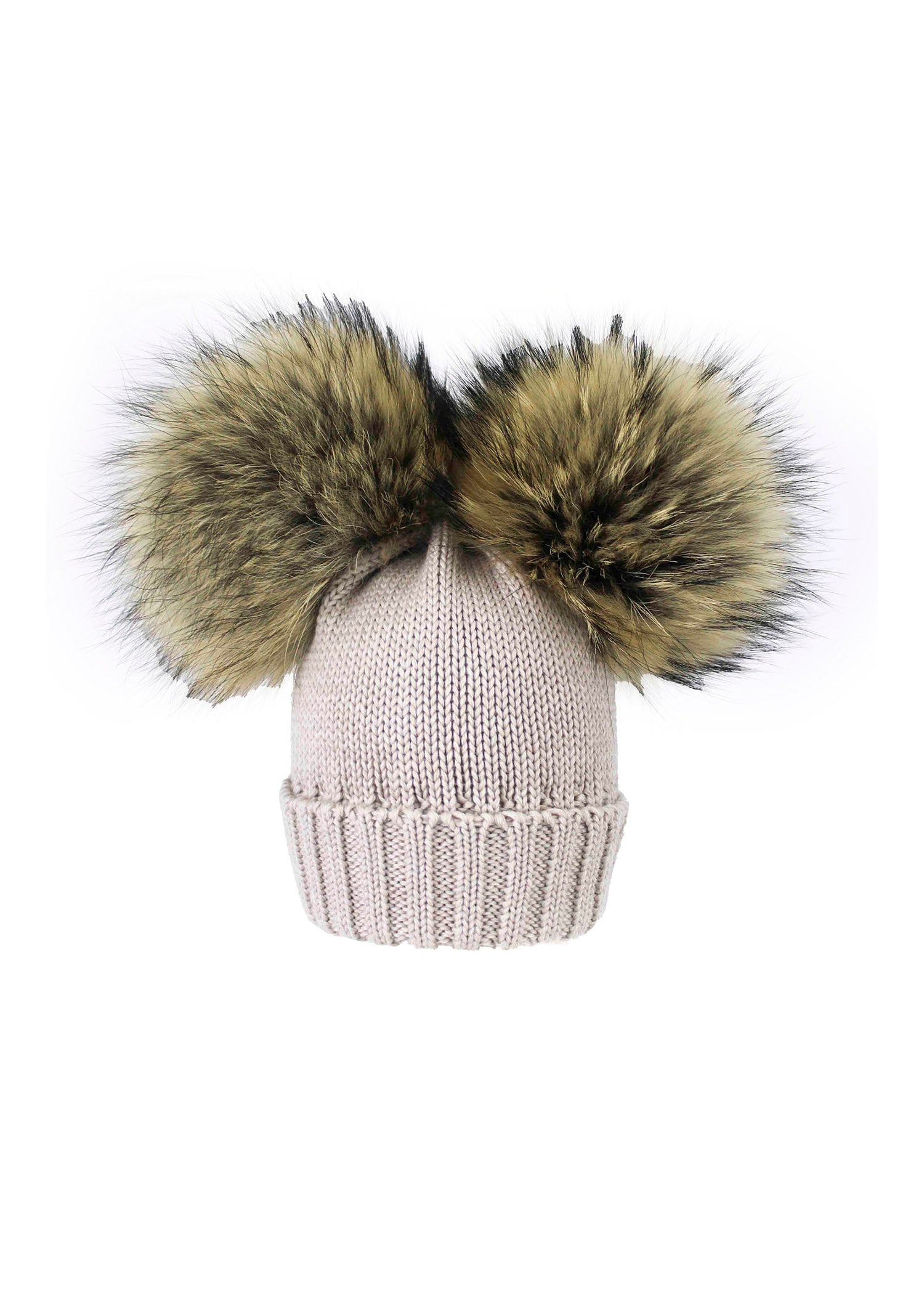 Regina's ecru wool hat with double pompom is the perfect accessory to keep your little one's head warm in style. Crafted from soft wool with a thick ribbed knit, it offers a comfortable and stretchy fit, fitting perfectly on the head. The cuff and faux fur pompom add a touch of elegance and playfulness to the winter look, making it ideal for cold days. A must-have to add warmth and style to little girls' wardrobes.