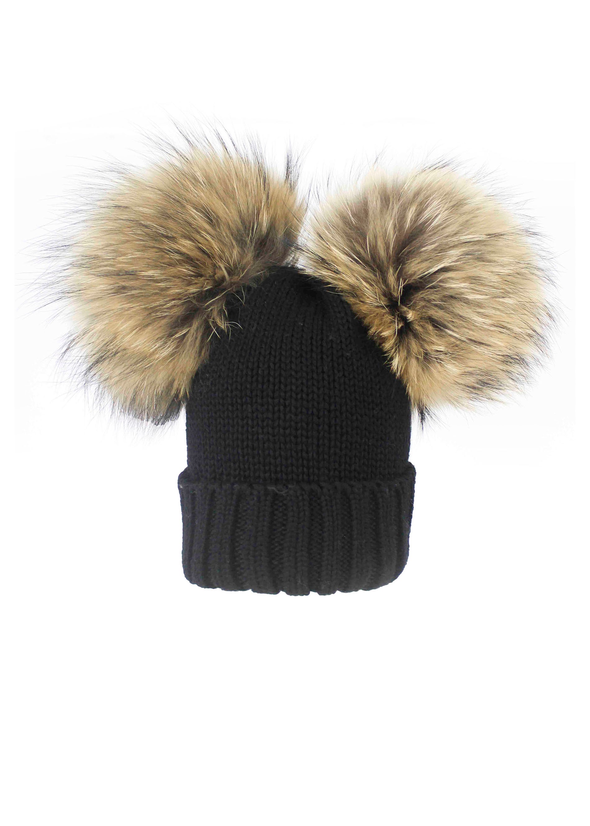Regina's black double pom pom wool hat is the perfect accessory to keep your little one's head warm in style. Crafted from soft wool with a chunky ribbed knit, it offers a comfortable and stretchy fit, fitting perfectly on the head. The cuff and faux fur pom pom add a touch of elegance and playfulness to the winter look, making it ideal for cold days. A must-have to add warmth and style to your little girl's wardrobe.
