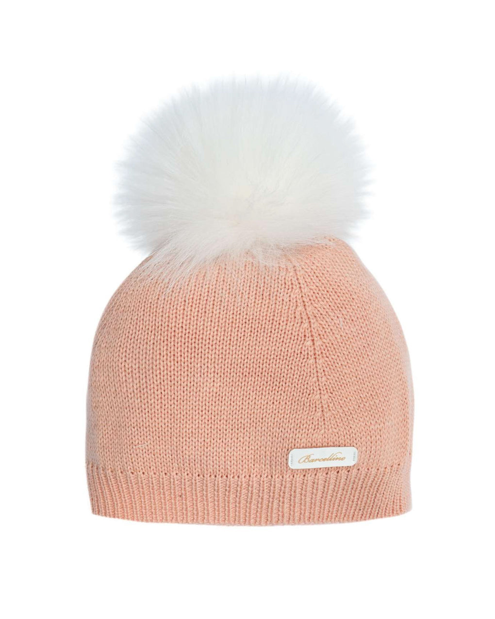 Barcellino Kids Cappello in Cotone Salmone con Pompon Bianco per Neona - Florence Kids