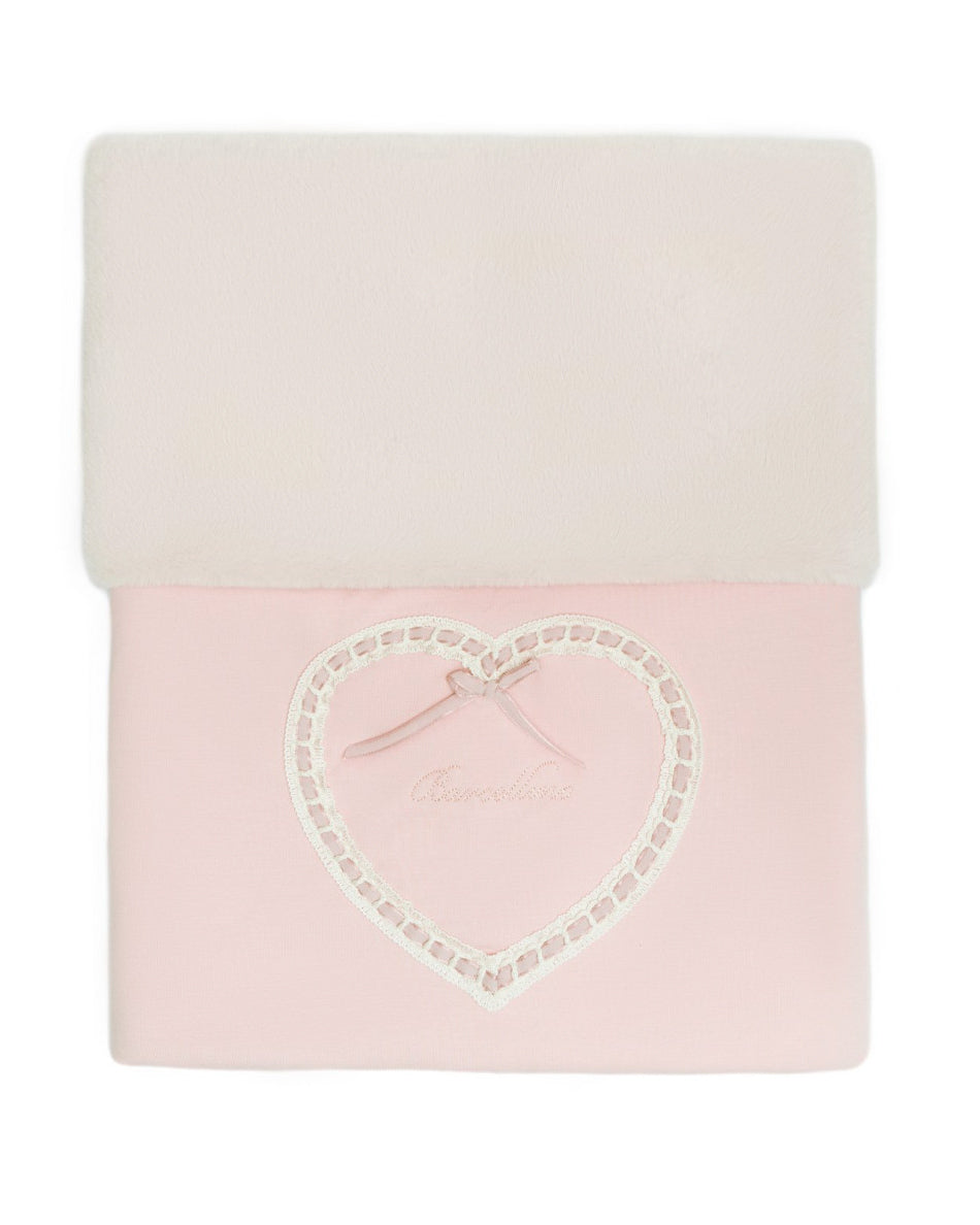 Barcellino Kids Coperta Rosa con Cuore Ricamato e Interno in Peluche per Neonate