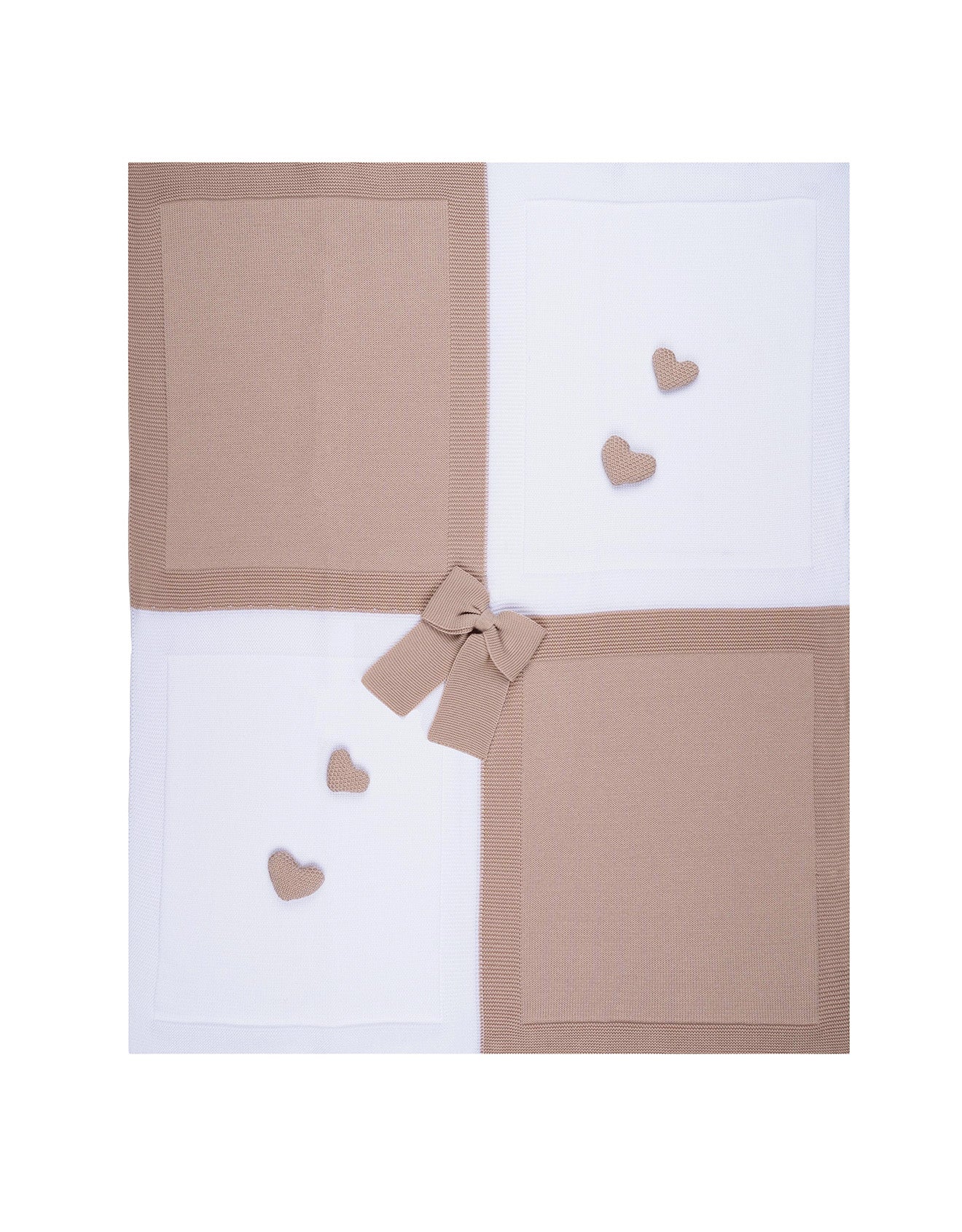 Marlù Coperta Bianco/Sabbia a Contrasto con Applicazione Fiocco e Cuori per Neonate