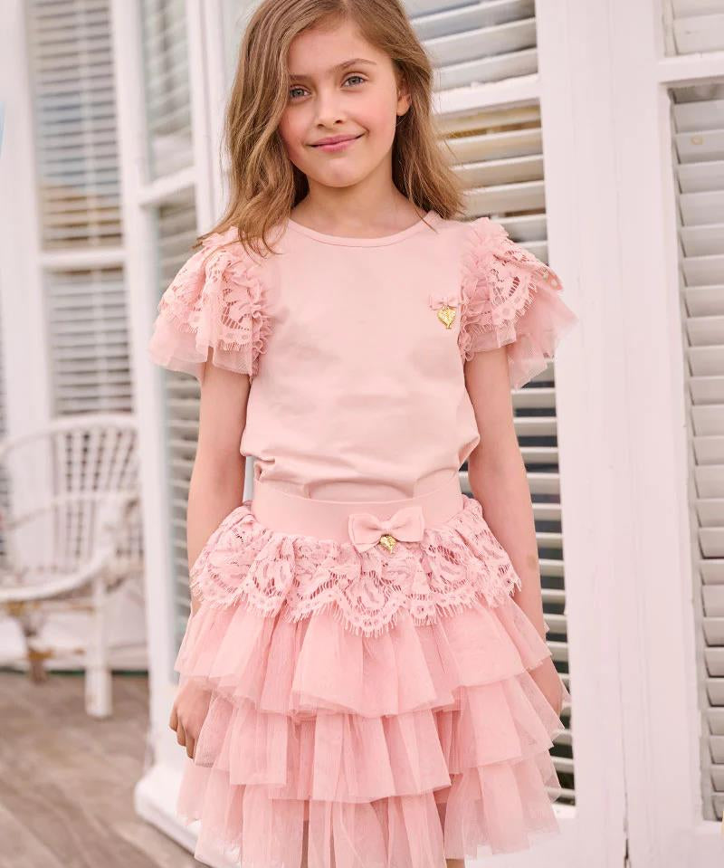 Angel's Face Abito Rosa a Costine con Tulle per Bambine