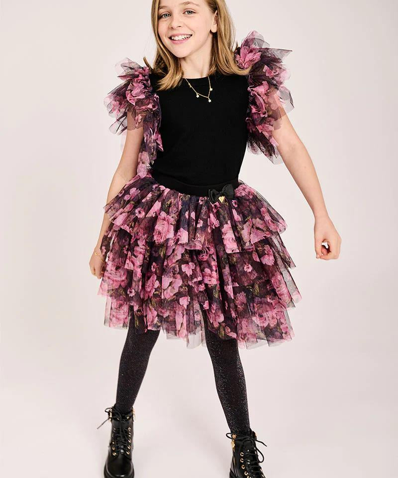 Angel's Face Gonna Nera Floreale per Bambine