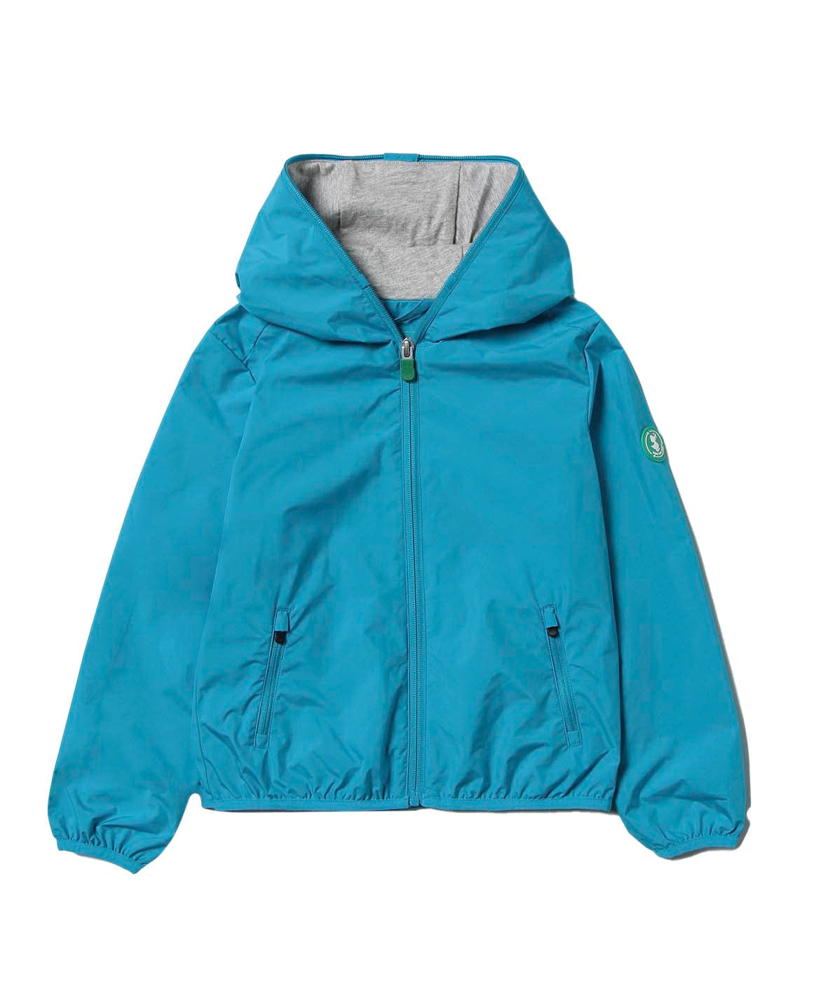 Save the Duck Kids Giubbino Celeste con Cappuccio con Patch Logo per Neonati (fronte)
