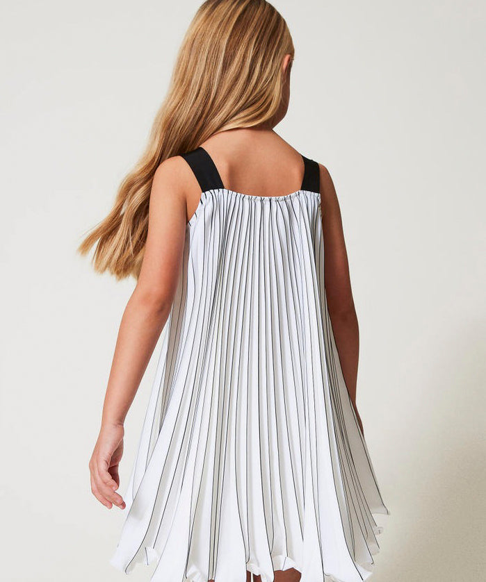 Twinset Kids Abito Bianco Plissettato per Bambine