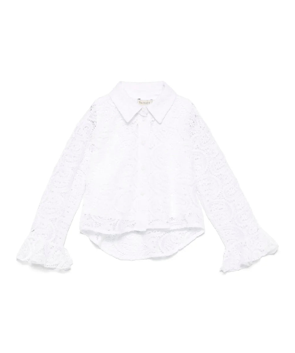 Twinset Kids Camicia Bianca in Pizzo Macrame per Bambine