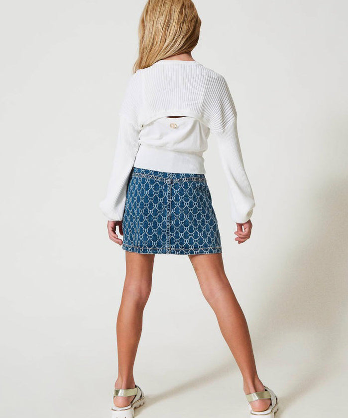 Twinset Kids Gonna Nera in Maglia con Logo Jacquard per Bambine
