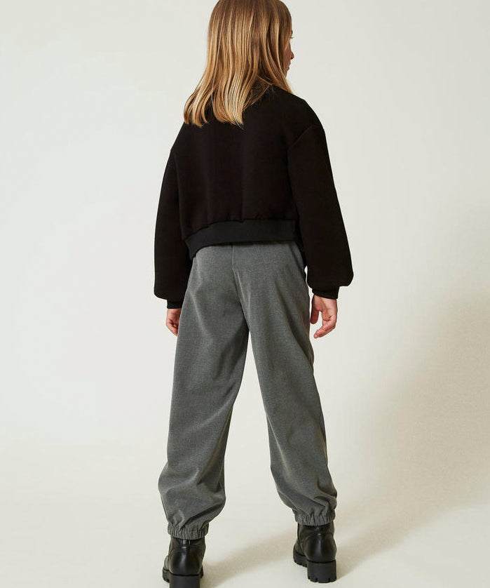Twinset Kids Pantaloni Canapa Forati con Logo per Bambine