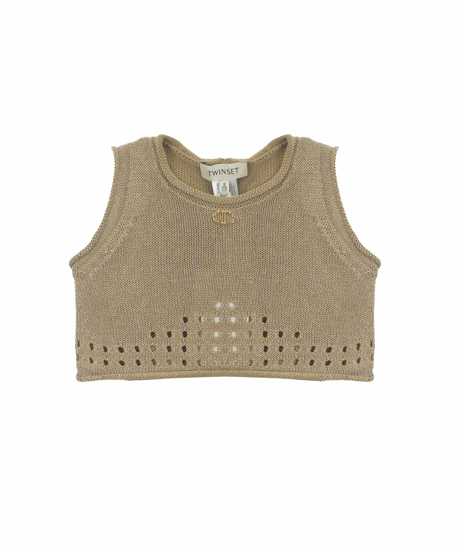 Twinset Kids Top Canapa Forato con Logo per Bambine