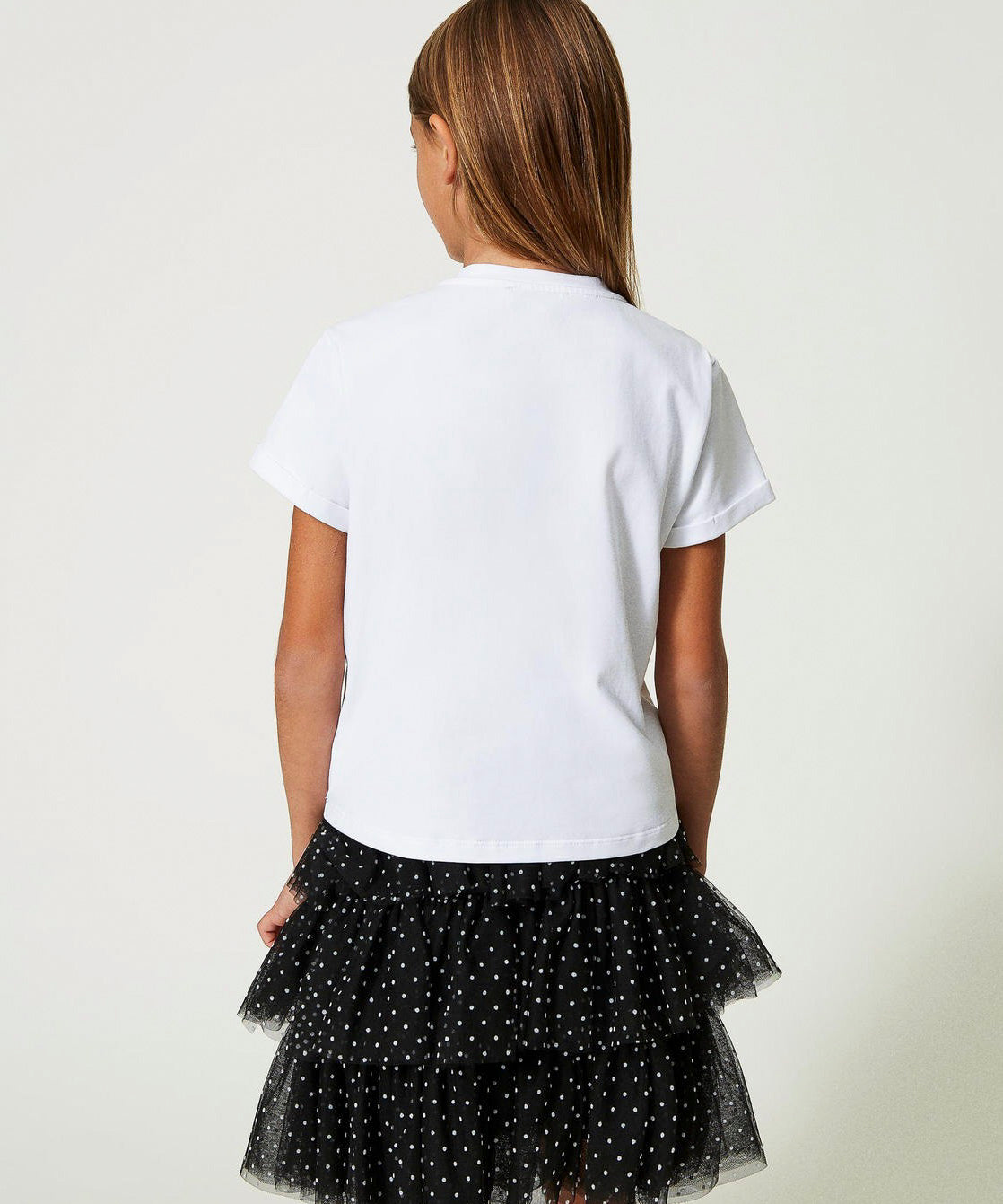 Twinset Kids T-shirt Bianca Crop con Logo Gommato per Bambine (retro)