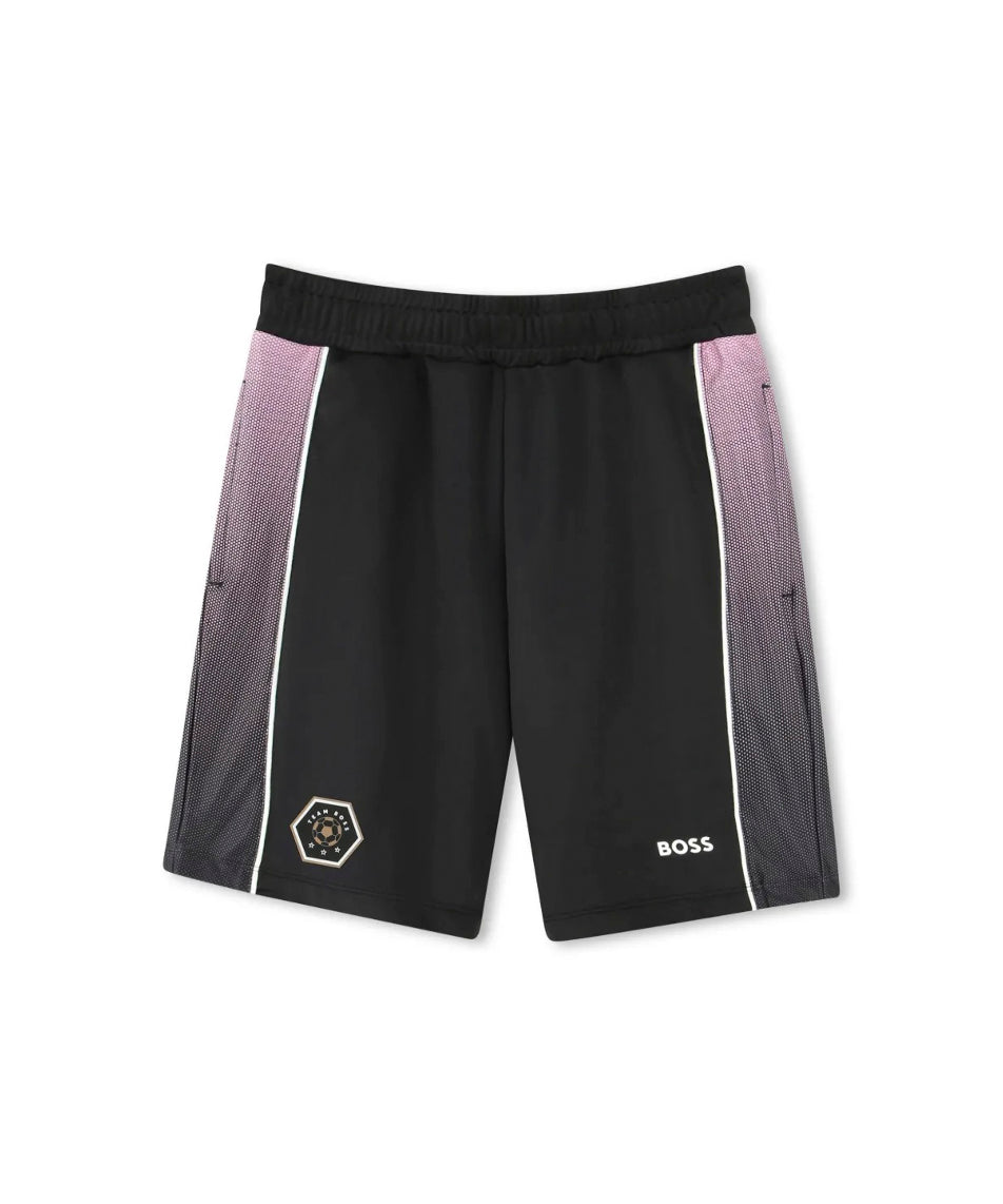 Boss Kids Short Nero con Stampa Logo per Bambini