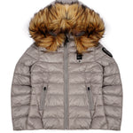 Il Blauer Kids giubbino grigio nebbia con cappuccio e pelliccia Ivory Junior per bambine è il capo ideale per affrontare l’inverno con stile e comfort. Realizzato in tessuto tecnico trapuntato, offre un eccellente isolamento termico mantenendo la leggerezza tipica dei piumini Blauer.