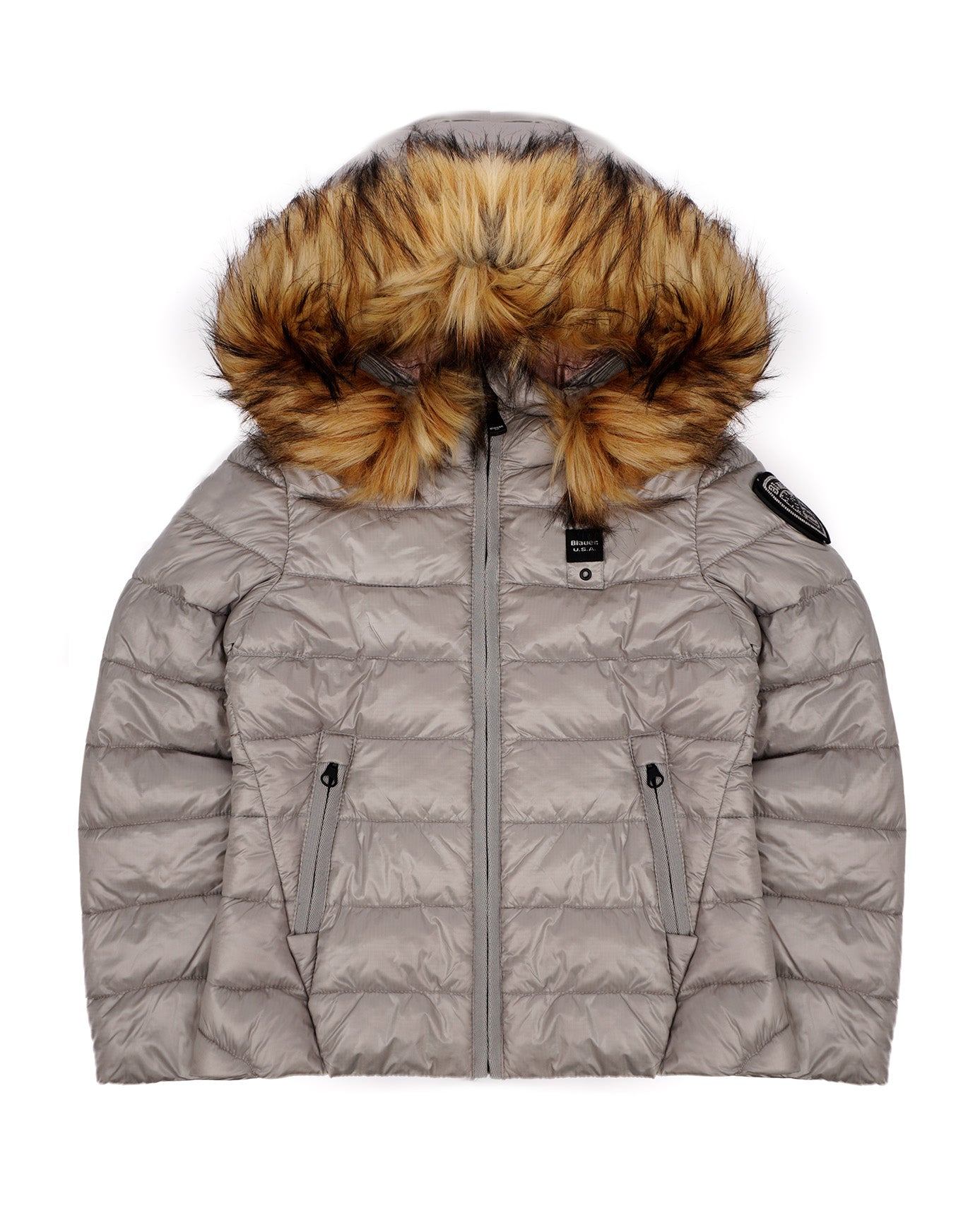 Blauer Kids Giubbino Grigio Nebbia con Cappuccio e Pelliccia Ivory Junior per Bambine