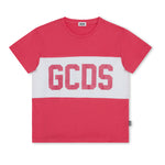 GCDS Kids T-shirt Fuxia con Banda Logo per Bambine