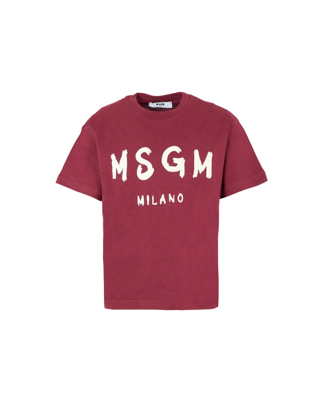 La t-shirt borgogna MSGM Kids con stampa logo è un capo casual e distintivo, perfetto per impreziosire il guardaroba dei più piccoli durante la stagione Autunno/Inverno 2025. Realizzata in 100% cotone jersey, garantisce comfort, morbidezza e traspirabilità ideali per il gioco quotidiano.