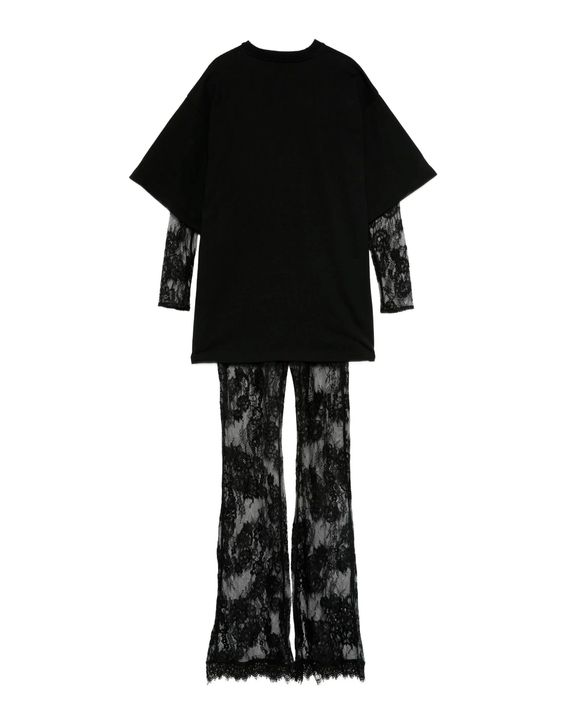 Pinko Kids Tuta in Pizzo Nera con T-shirt per Bambine