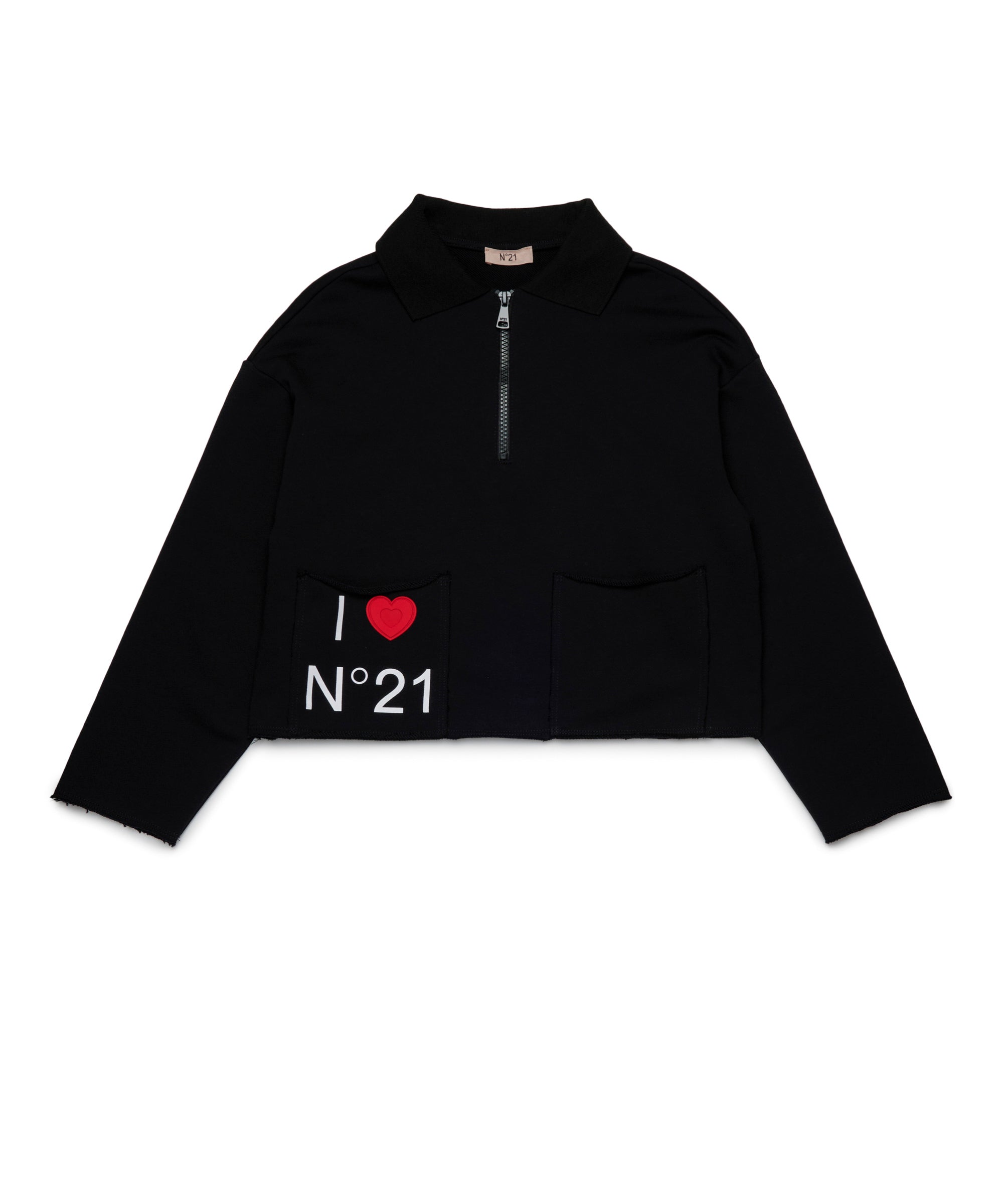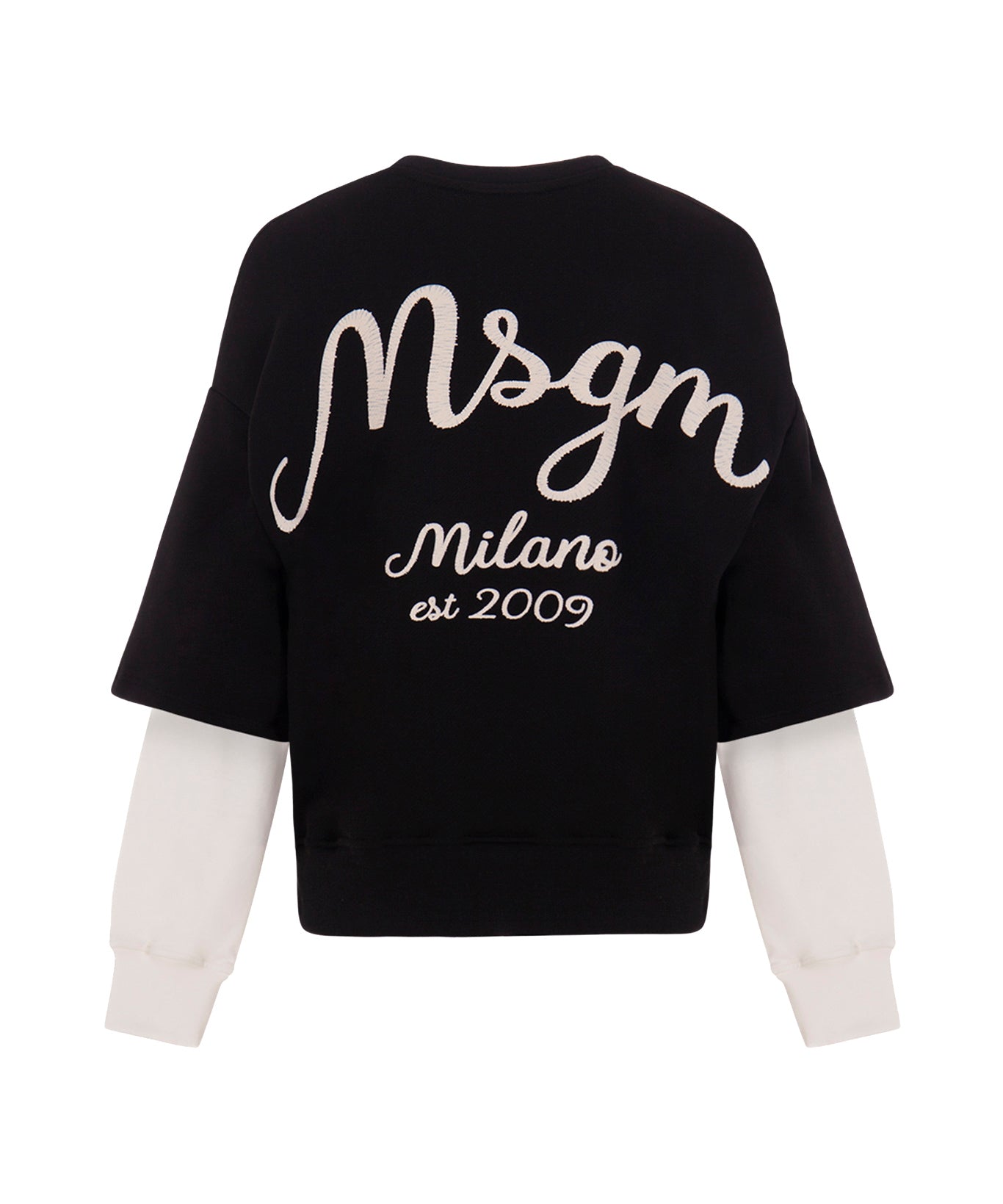 MSGM Kids Felpa Girocollo Nera White Sleeves per Bambine