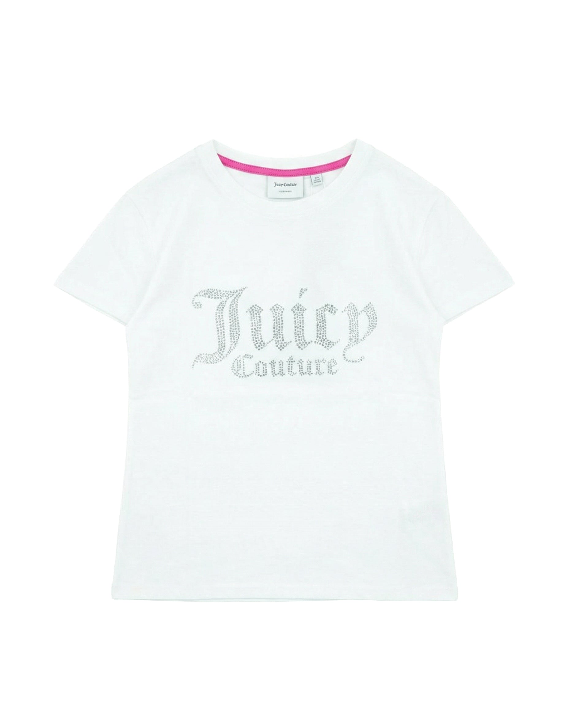 Juicy Couture Kids T-Shirt Bianca con Scritta Logo in Strass per Bambine