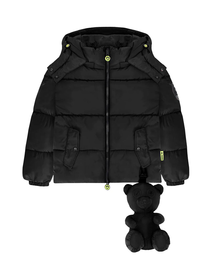 Barrow Kids Giubbotto Imbottito Nero Unisex con Cappuccio e Orsetto Rimovibile per Bambini