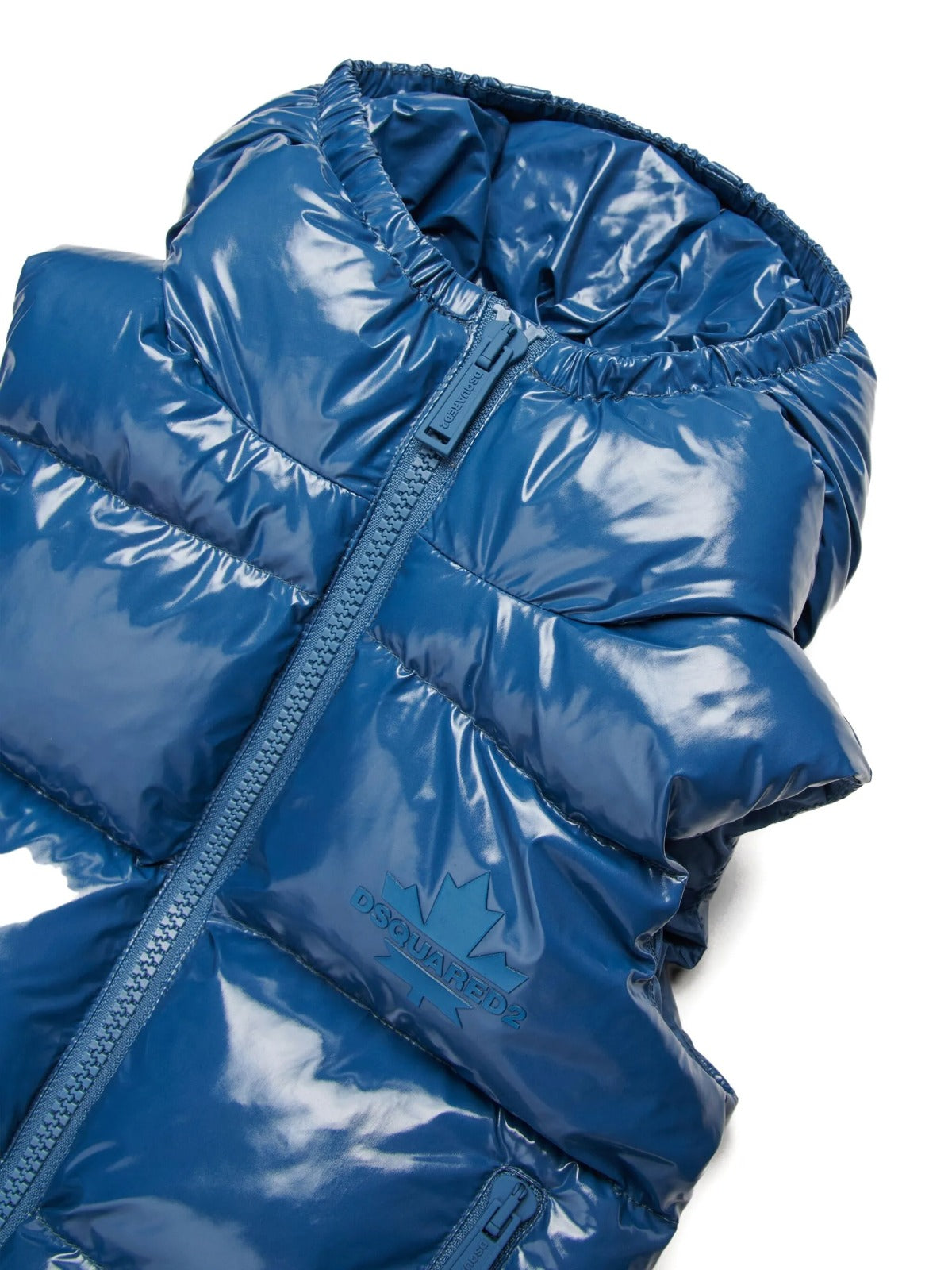 Il giubbino smanicato puffer copen bleu Dsquared2 Kids per Bambini unisce praticità e stile contemporaneo, perfetto per i mesi più freddi. Realizzato in nylon lucido e trapuntato, offre un’imbottitura accogliente e calda per proteggere durante le uscite invernali. Il design è caratterizzato da: