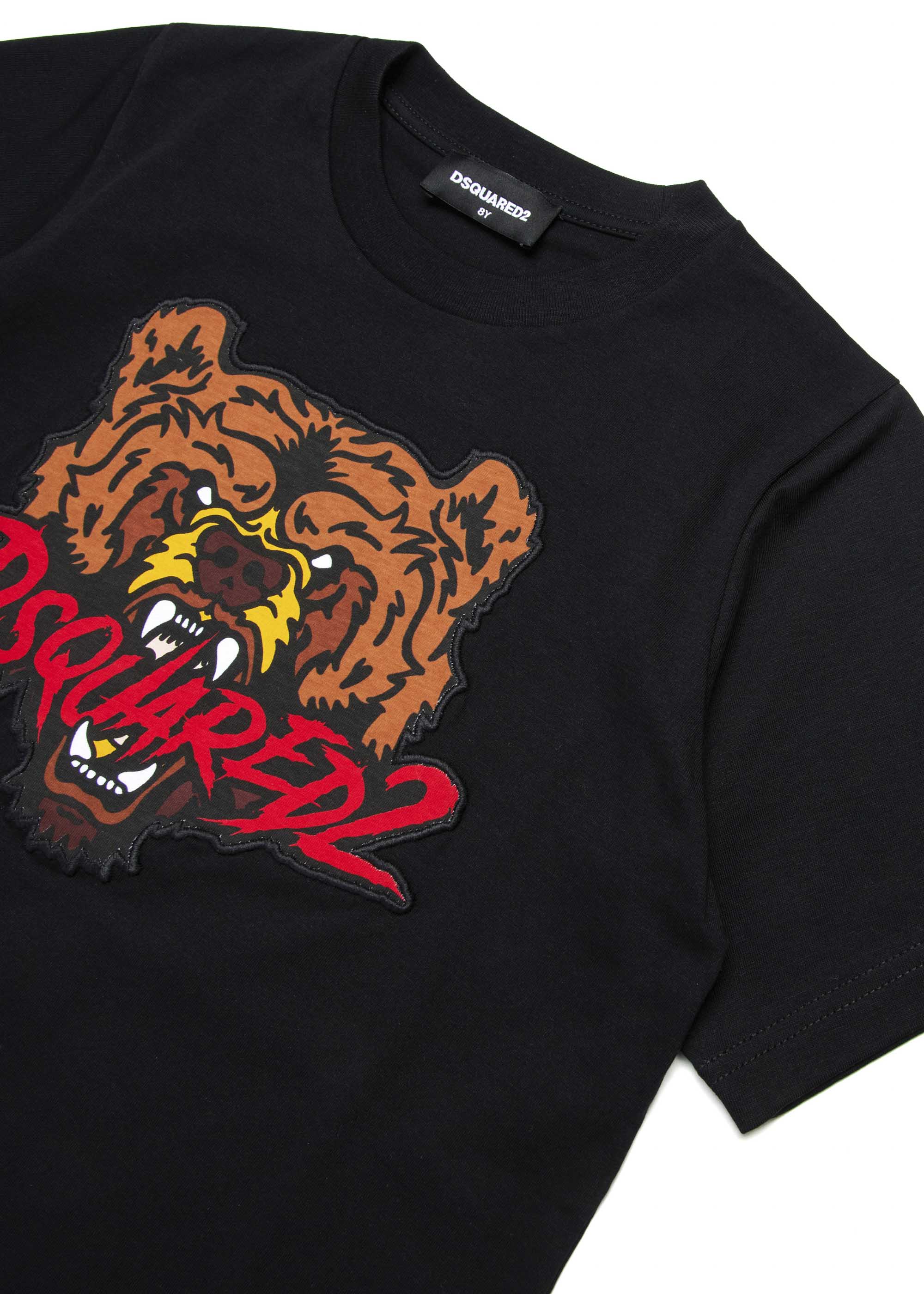 Dsquared2 Kids T-shirt Nera con Patch Bear per Bambini