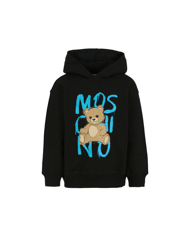 Moschino Kids Felpa con Cappuccio Nera con Stampa per Bambini