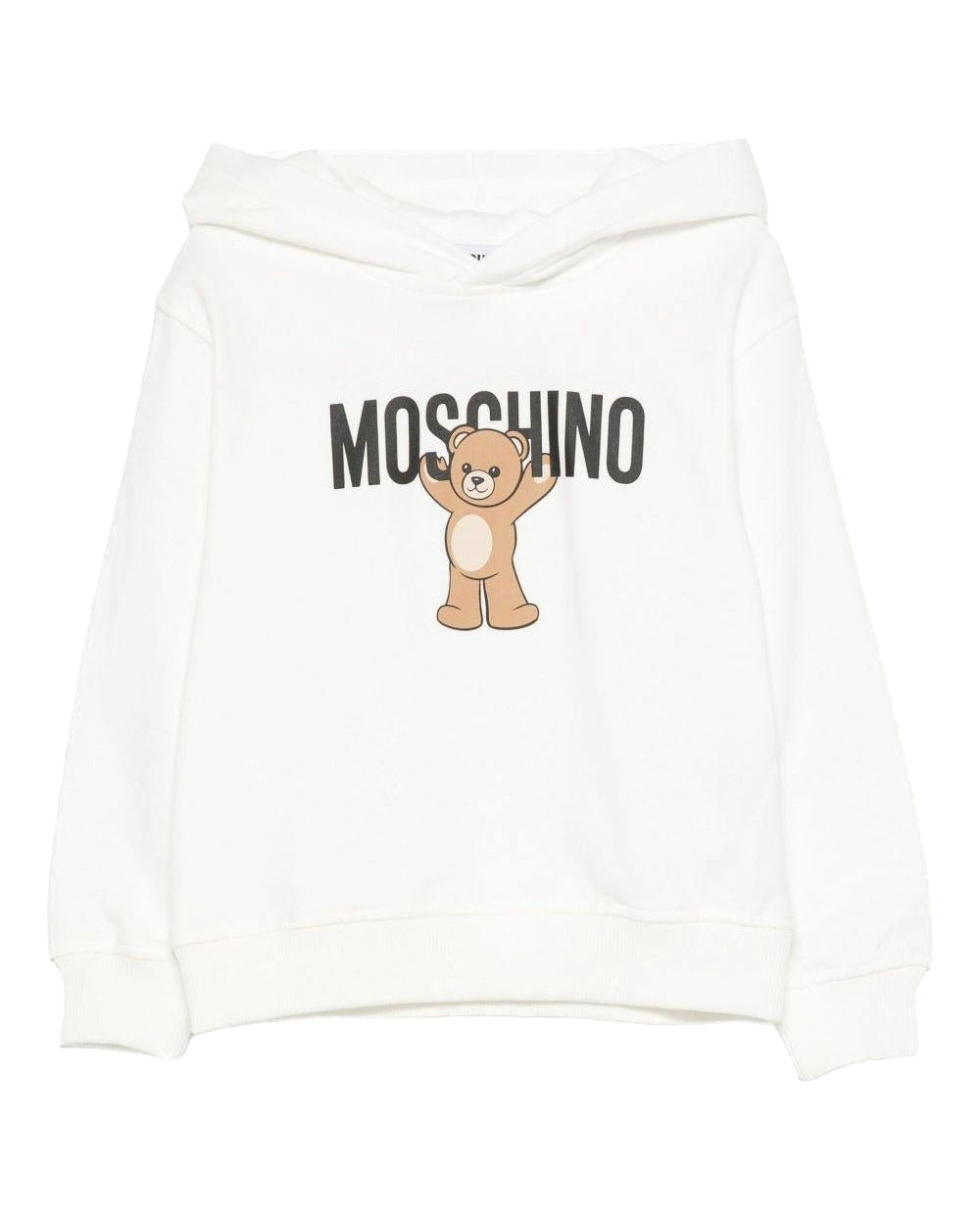 Moschino Kids Felpa con Cappuccio Panna con Logo per Bambini