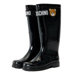 Moschino Kids Stivali Alti Neri Lucidi per Bambini